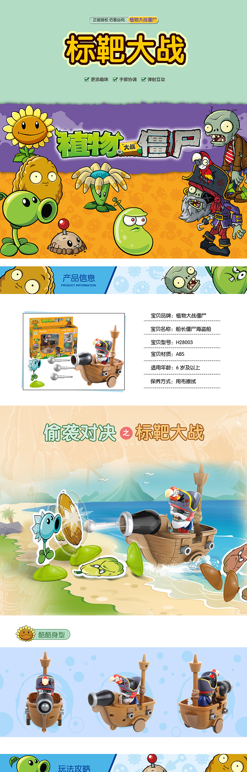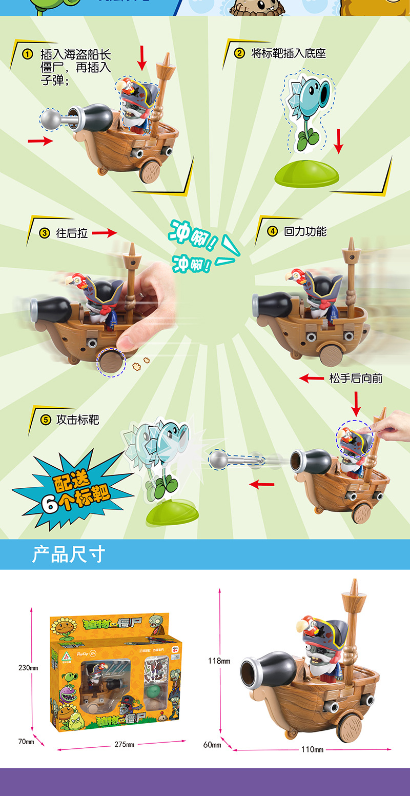 식물 대 좀비 Huili 인형 해적선 방출 거대한 좀비 달팽이 스몰 사이즈 보드 게임 장면 장난감스토어 가기