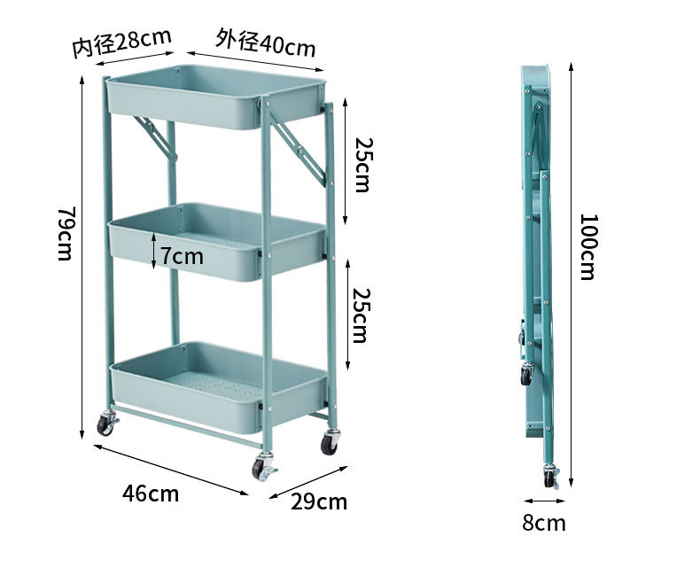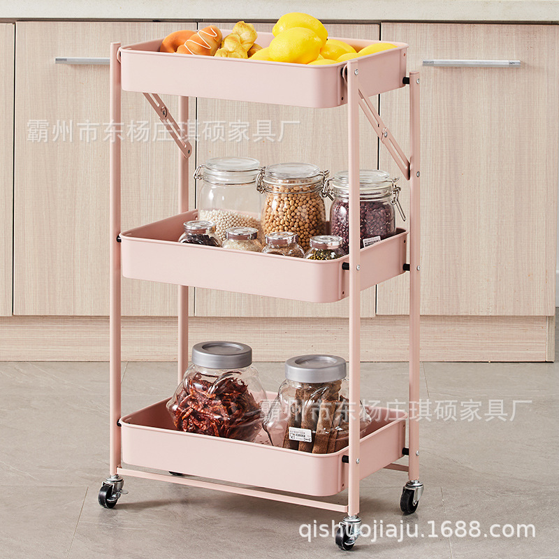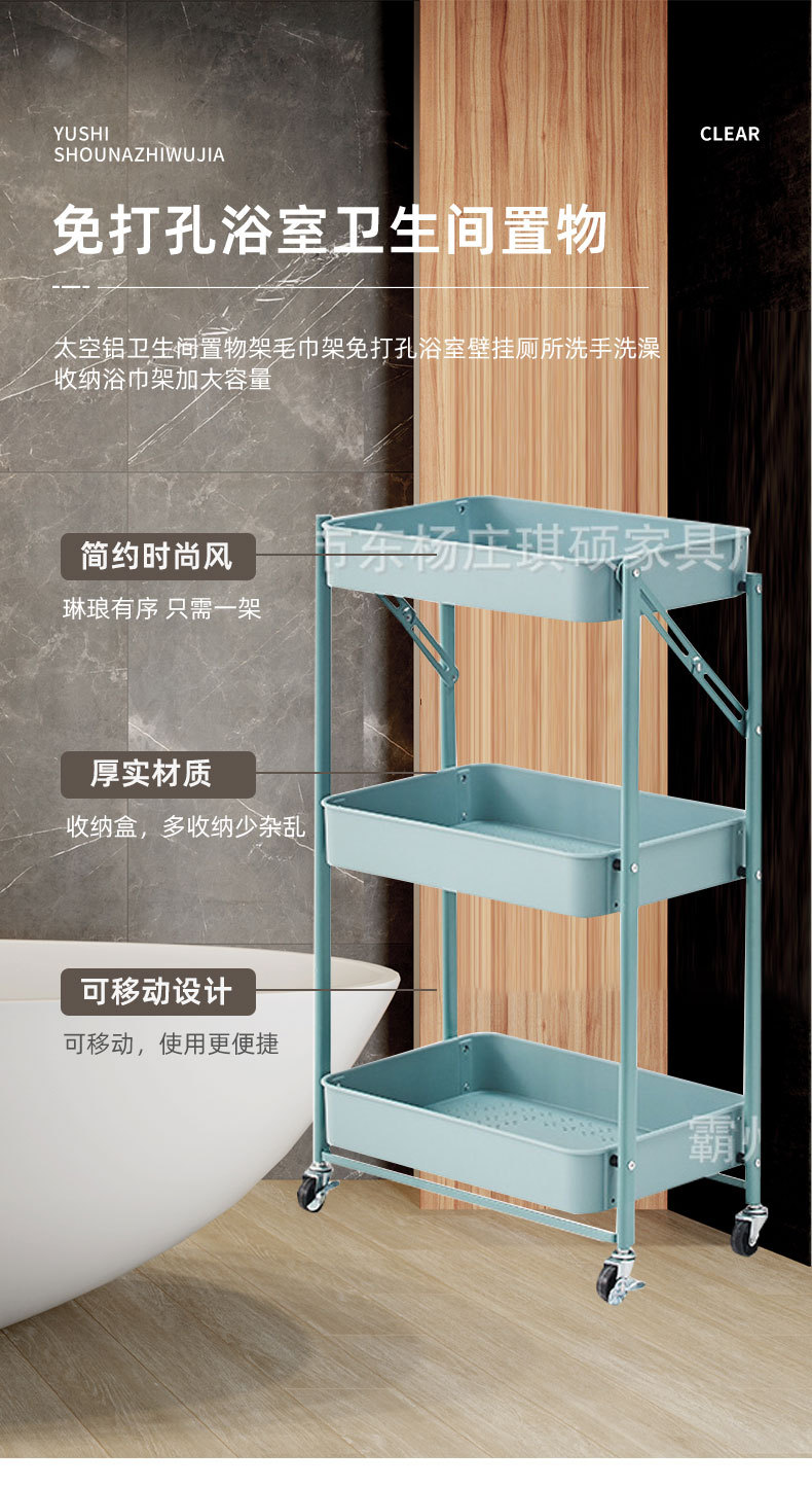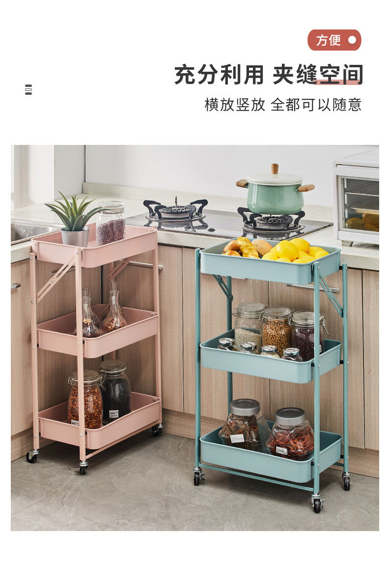 접이식 바닥형 카트형 수납선반, 설치 불필요, 욕실/주방/야채/간식 보관용, 수출용스토어 가기