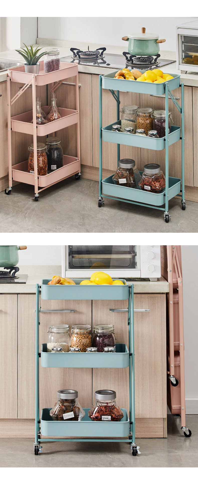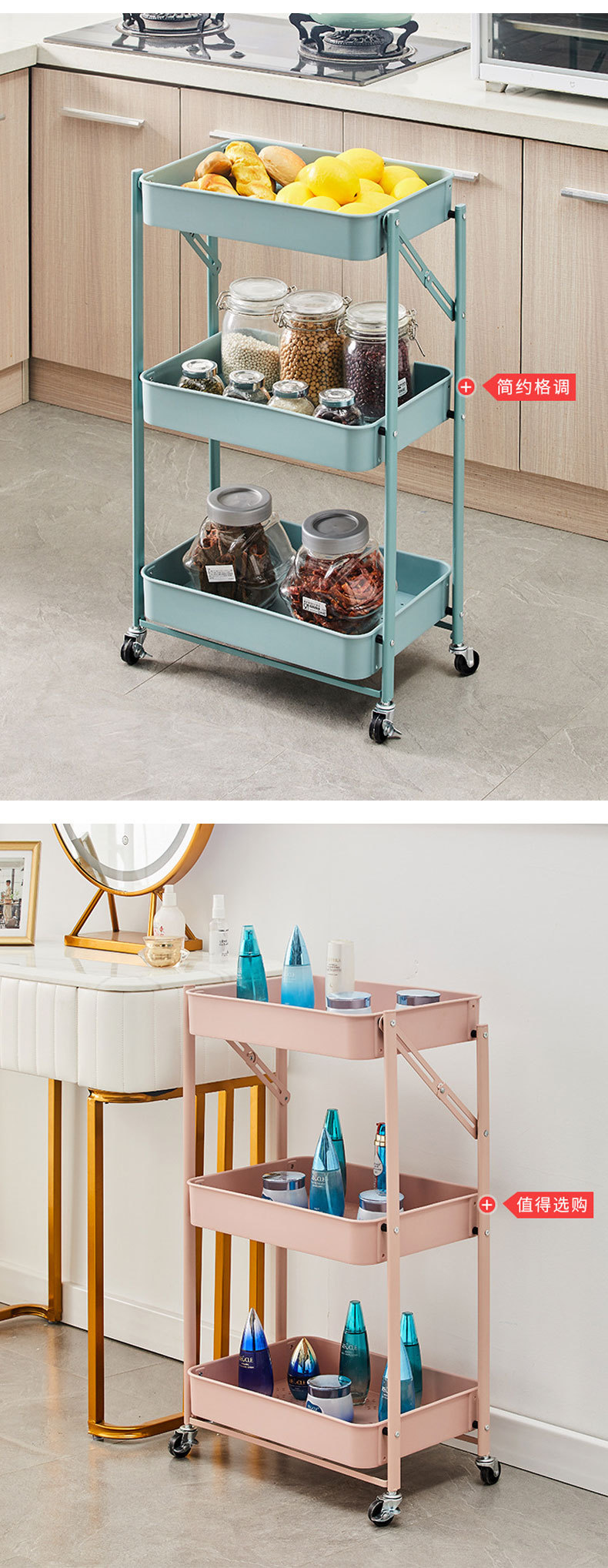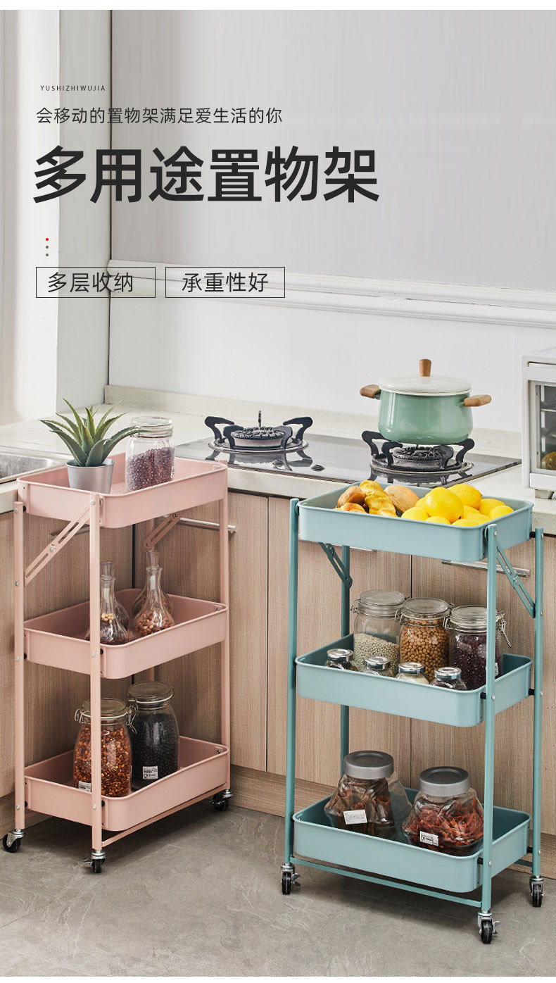 접이식 바닥형 카트형 수납선반, 설치 불필요, 욕실/주방/야채/간식 보관용, 수출용스토어 가기