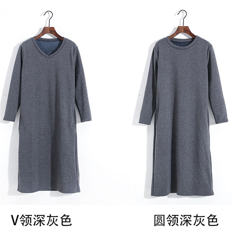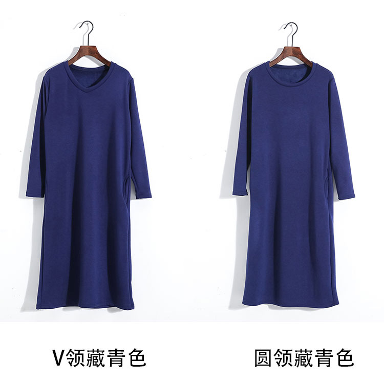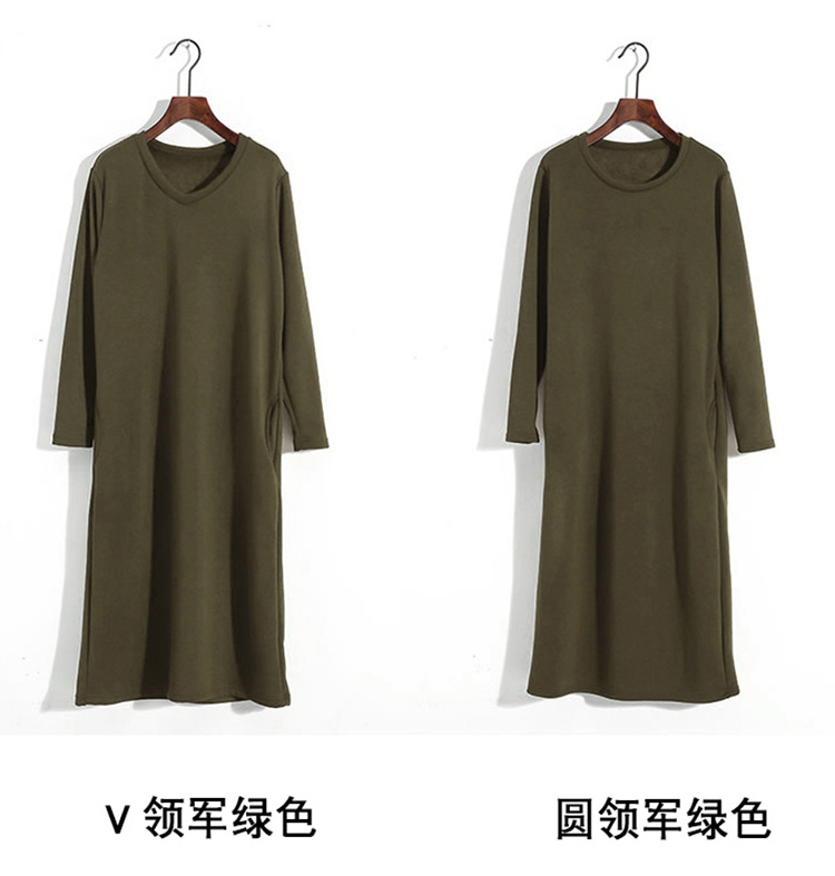 가을과 겨울 긴 느슨한 롱 원피스 양털 없는 기모 스웻셔츠 포켓 두꺼운 일본-한국 겨울 긴팔 원피스스토어 가기