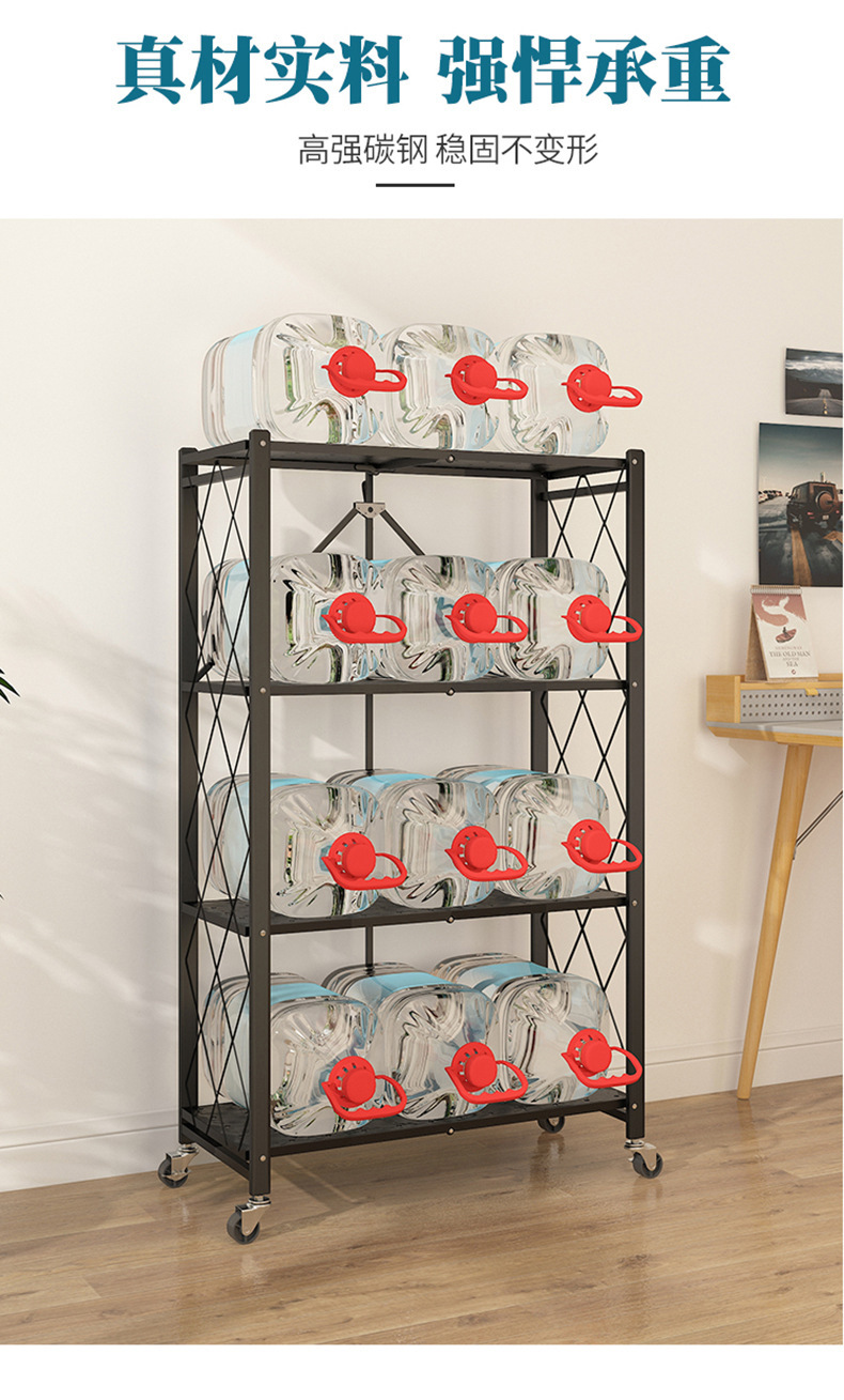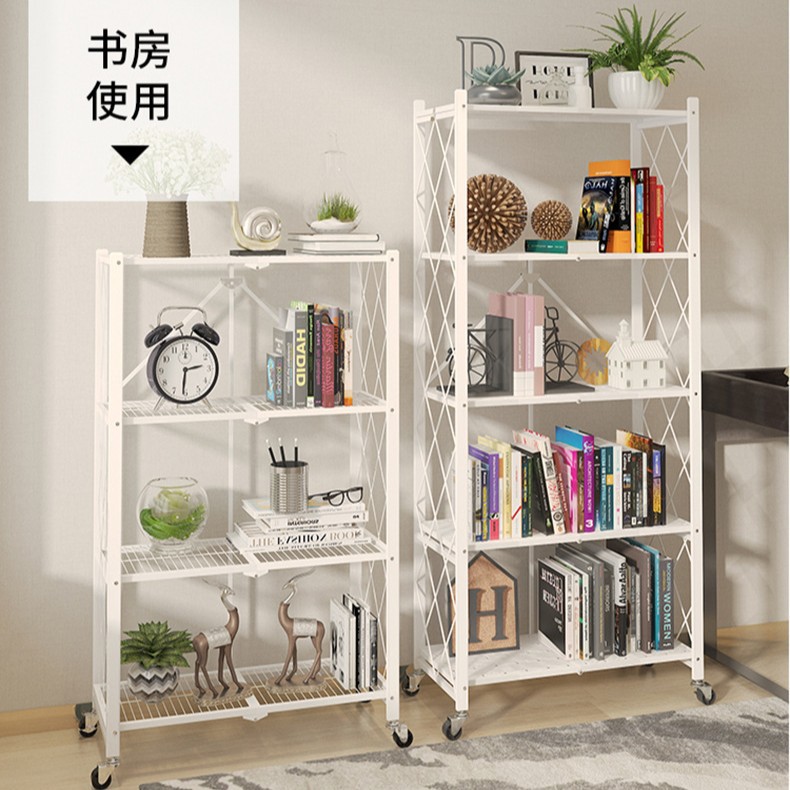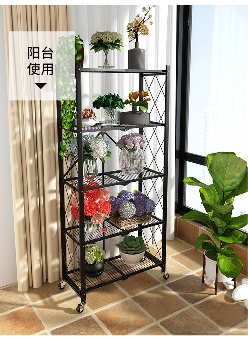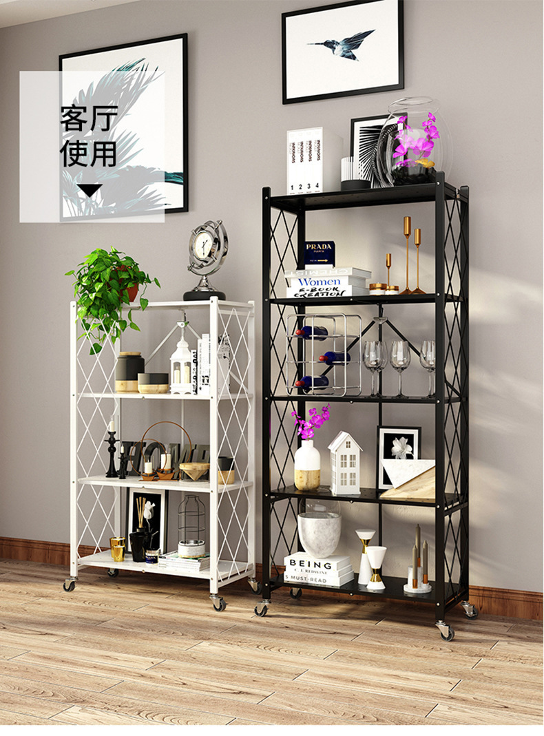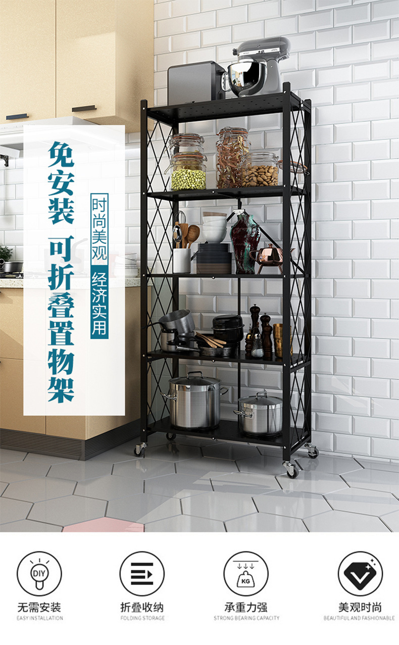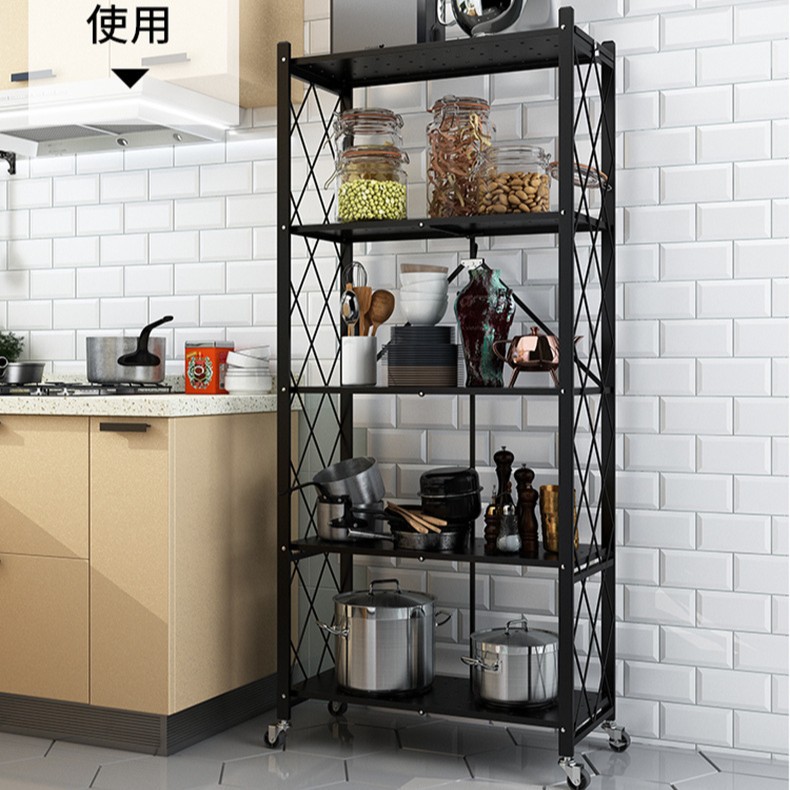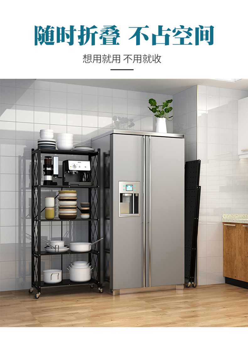 주방 설치 무료 접이식 선반 바닥 풀리 보관 접이식 랙이있는 다층 전자 레인지 선반스토어 가기