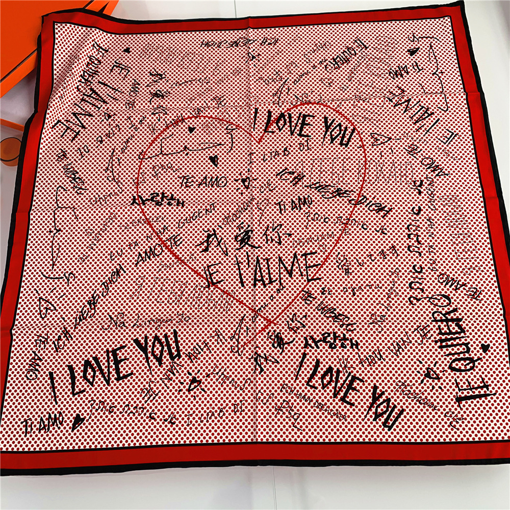Qixi 발렌타인 데이는 38 개 언어로 당신을 사랑한다고 말합니다. 수제 컬링 스퀘어 스카프 목도리 액세서리 선물 스카프