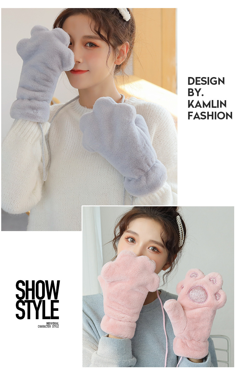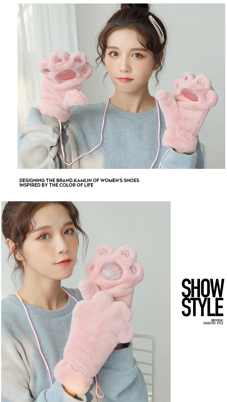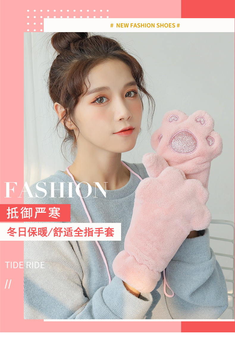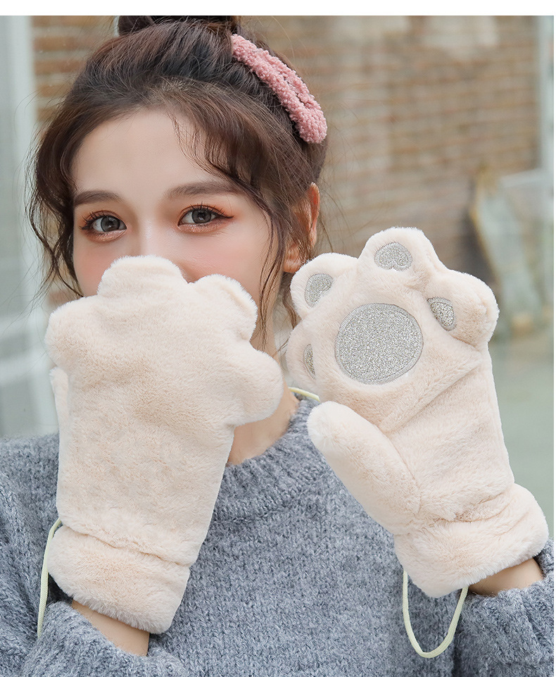 장갑 여자의 겨울 기모 두꺼운 따뜻한 학생 귀여운 만화 사이클링 방풍 곰 pow 장갑스토어 가기