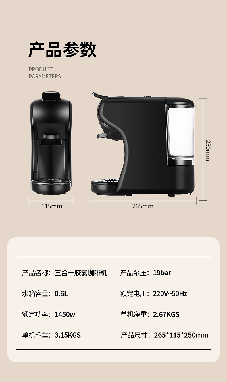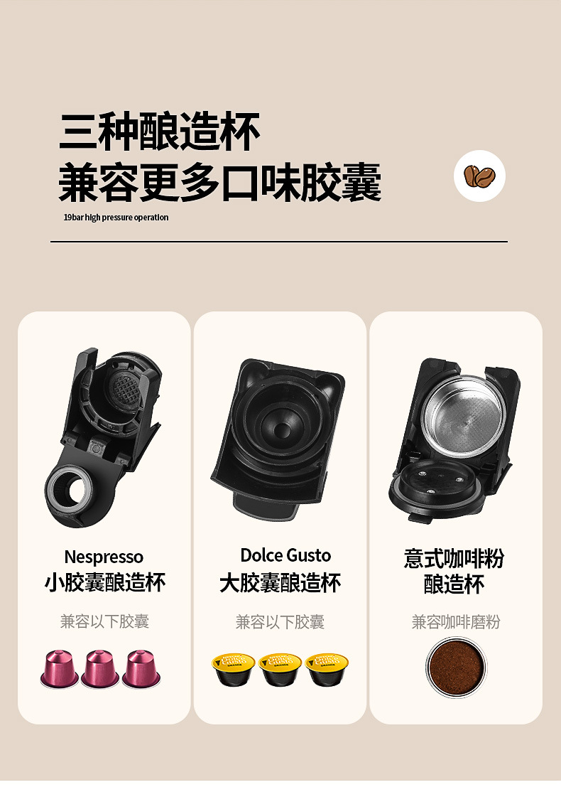 국경 간 무역 이탈리아 캡슐 커피 기계 휴대용 사무실 상업 소형 가정용 미국 커피 포트 19 Pa