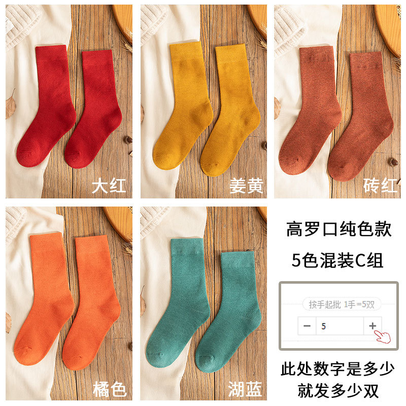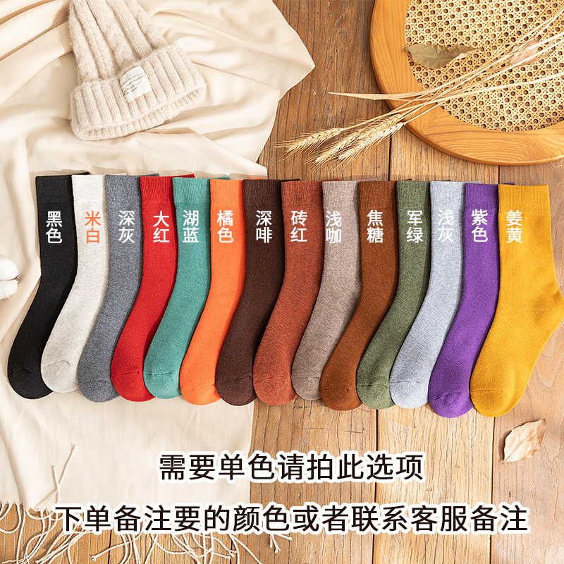 여성용 중목 양말, 가을 겨울용 테리 플러스 벨벳 두꺼운 보온 타월 양말, 남성용 단색 면 양말, 캐주얼하고 다용도