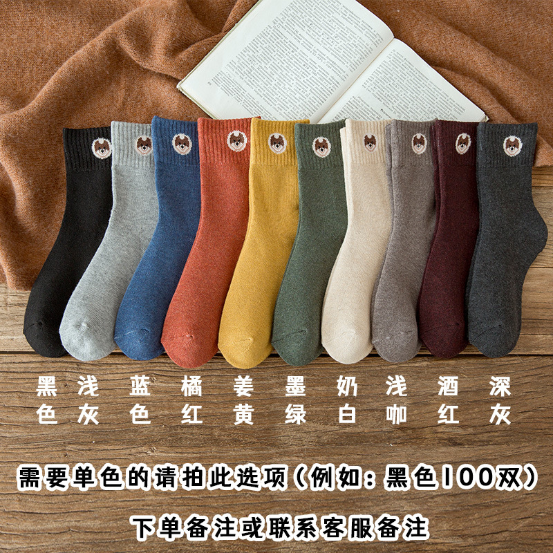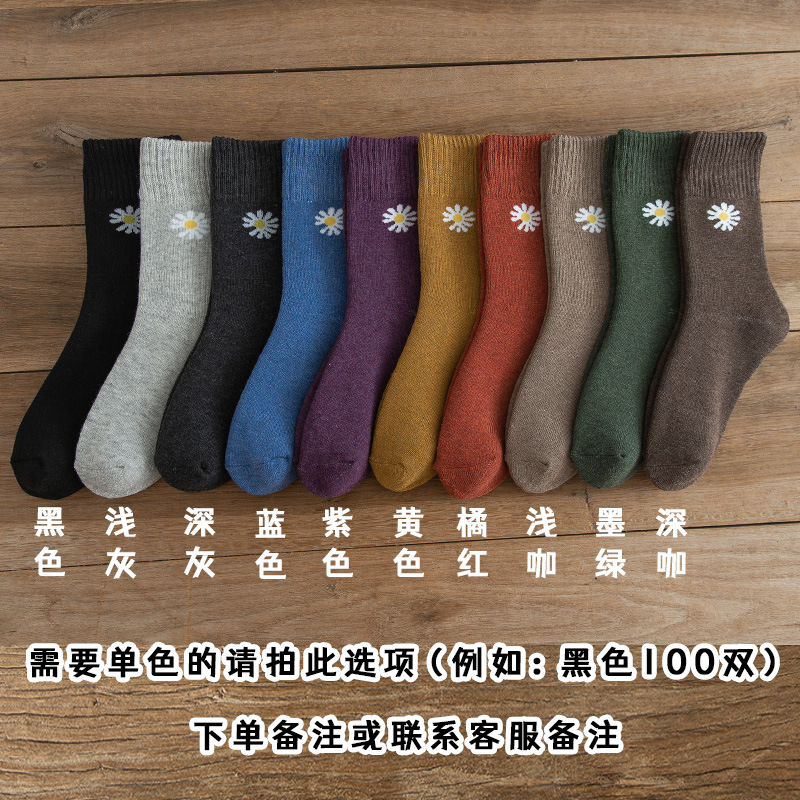 여성용 중목 양말, 가을 겨울용 테리 플러스 벨벳 두꺼운 보온 타월 양말, 남성용 단색 면 양말, 캐주얼하고 다용도스토어 가기