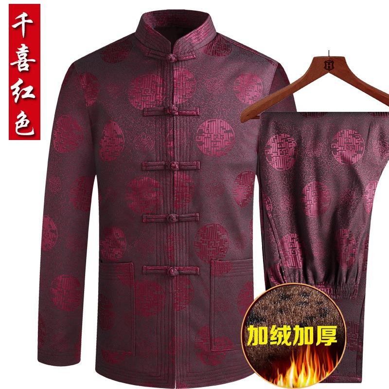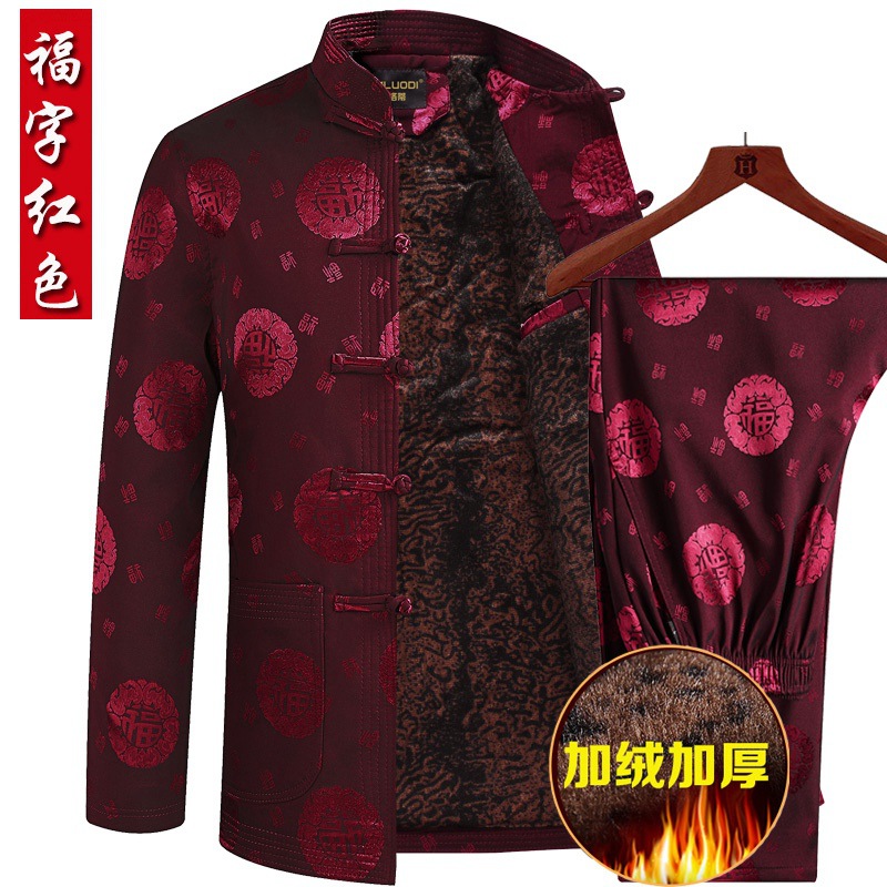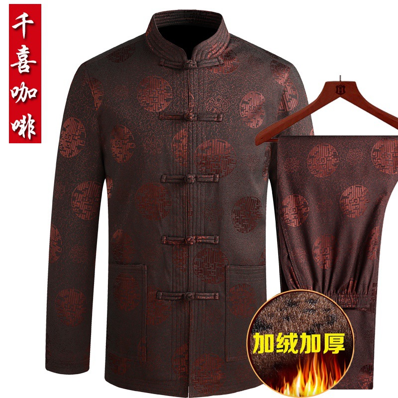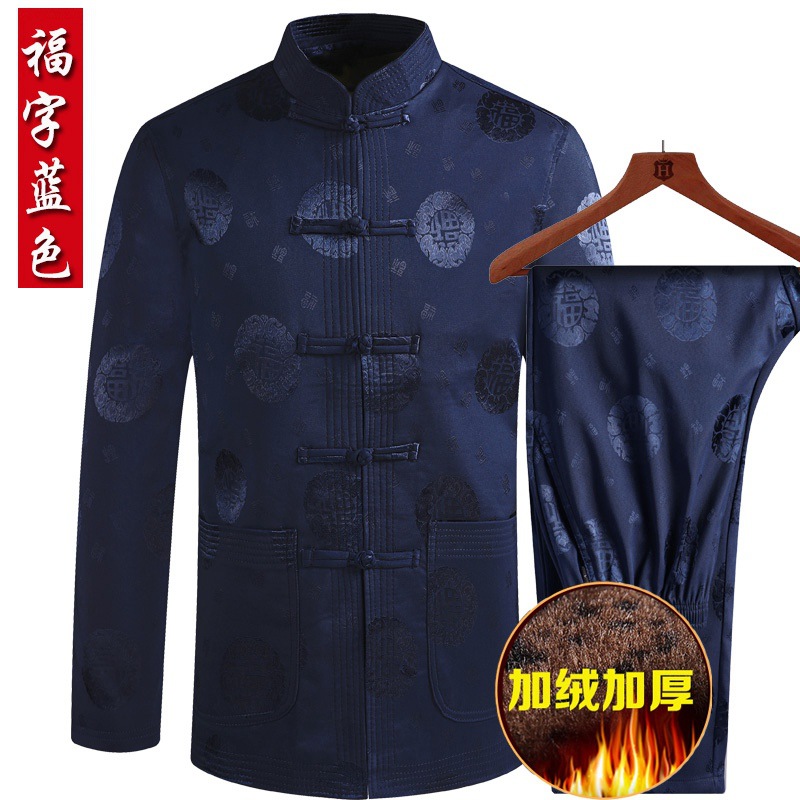 Tang 세트 남자의 가을과 겨울 기모 중년 및 노인 세트 아빠를위한 두꺼운 면 패딩 재킷 면 옷 재킷 할아버지 생일 옷