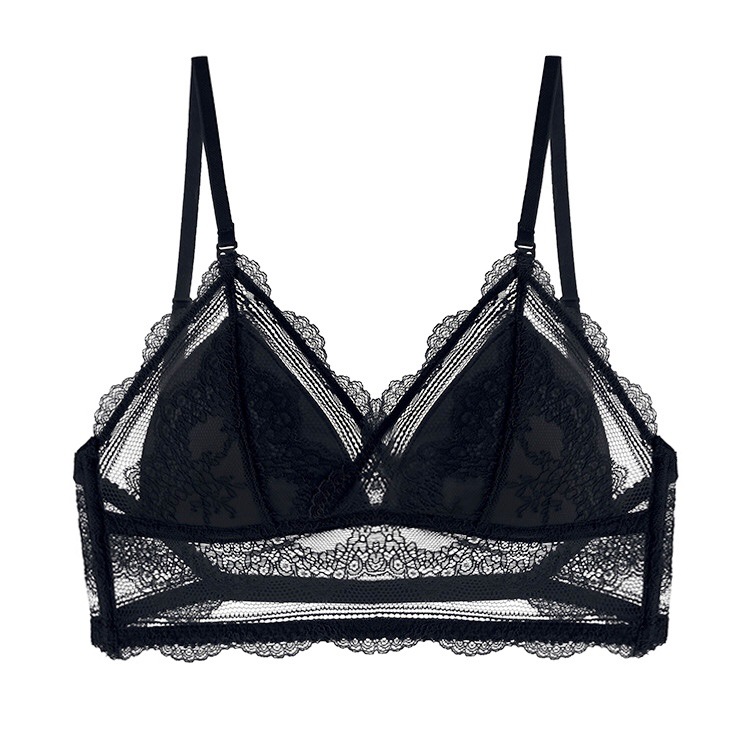 테두리가 없는 여성용 프랑스 섹시한 U자형 아름다운 등 브라, 얇은 브라, 보이지 않는 등이 없는 레이스 트라이앵글 컵 브라, 여름