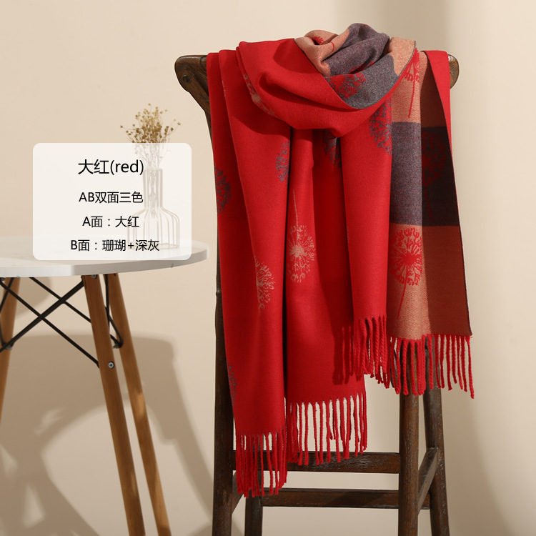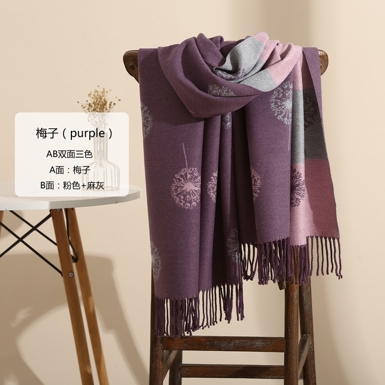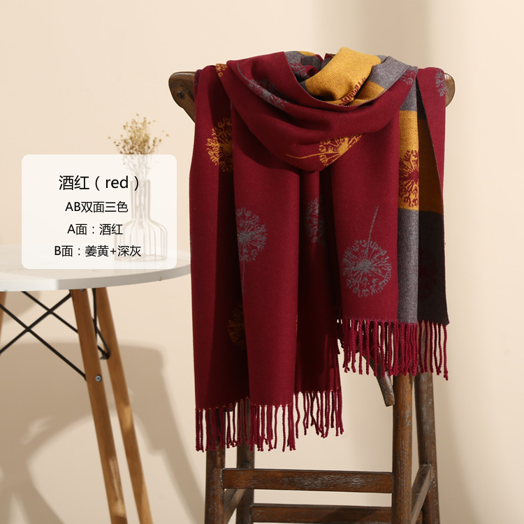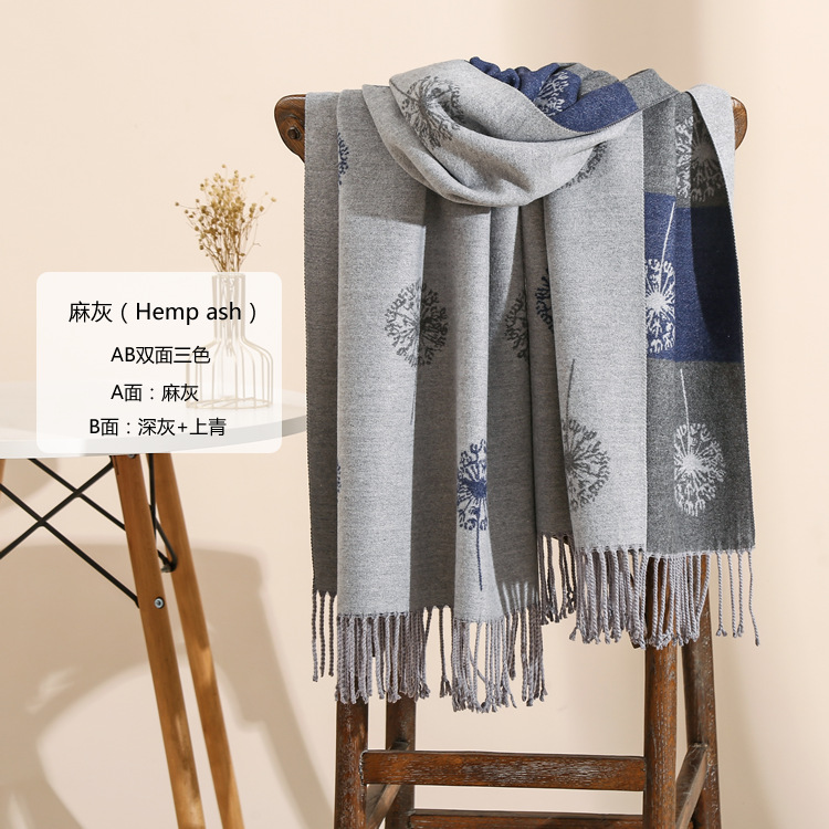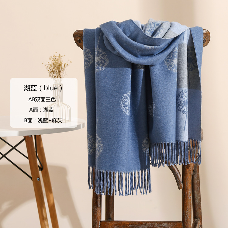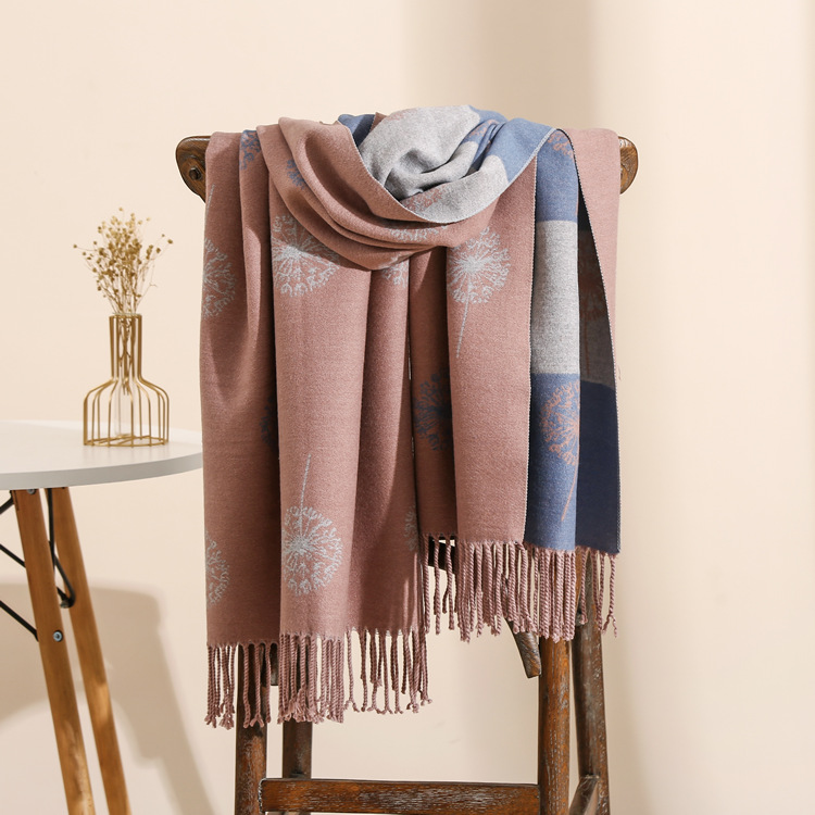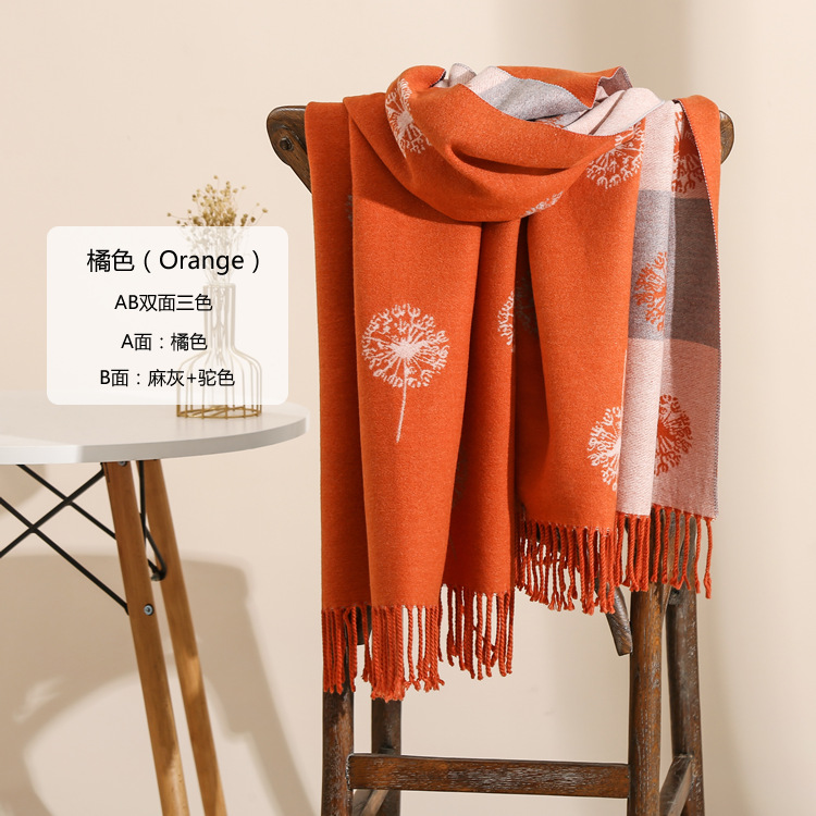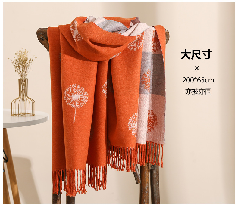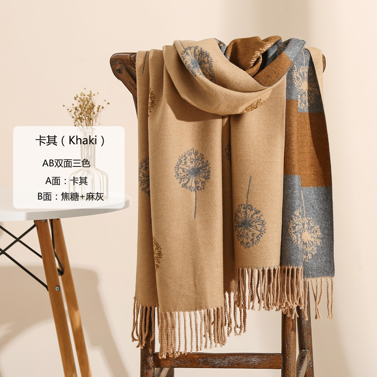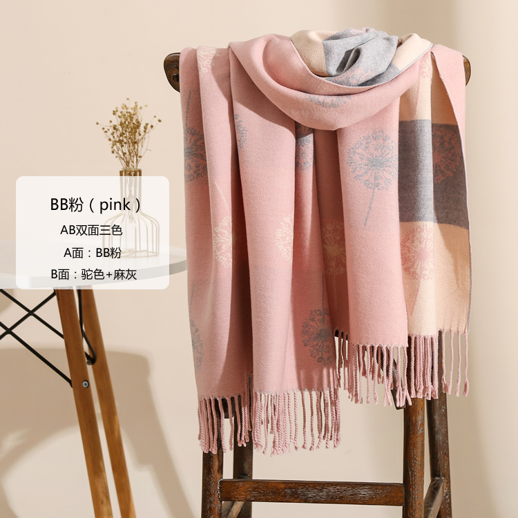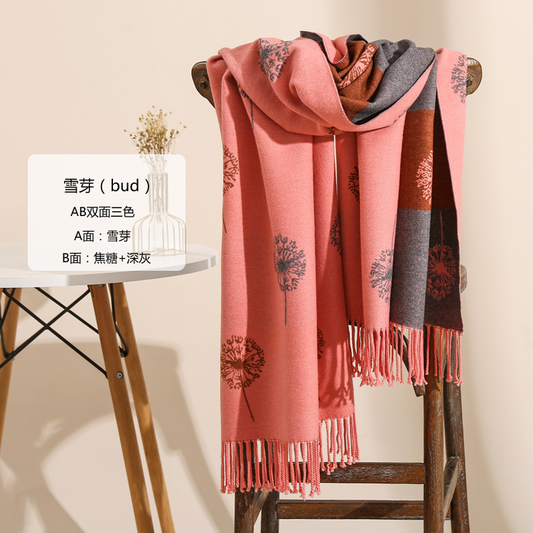 Rebei 민들레 양면 캐시미어 느낌 스카프 겨울 한국 스타일 여성 두꺼운 따뜻한 선물 스카프 목도리스토어 가기