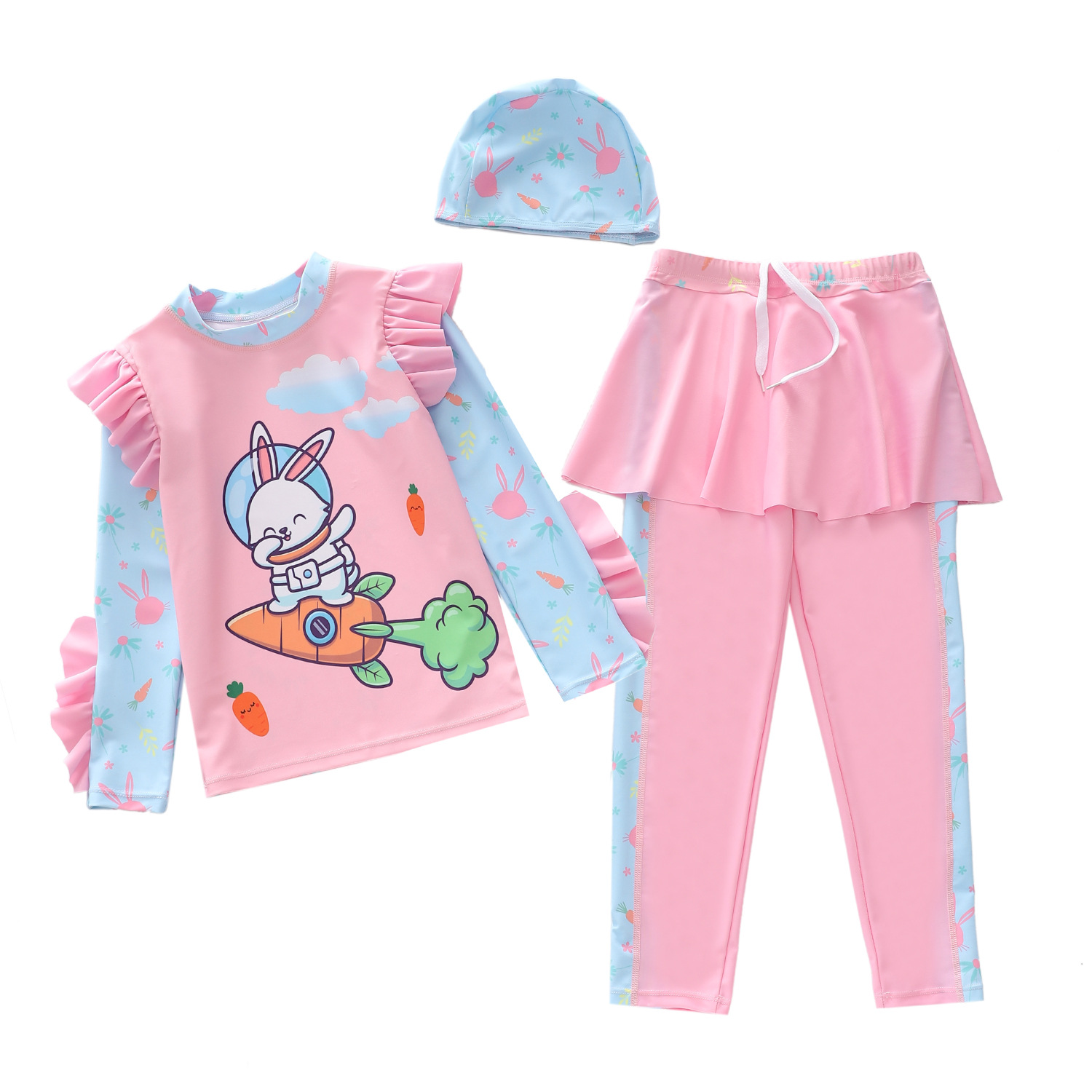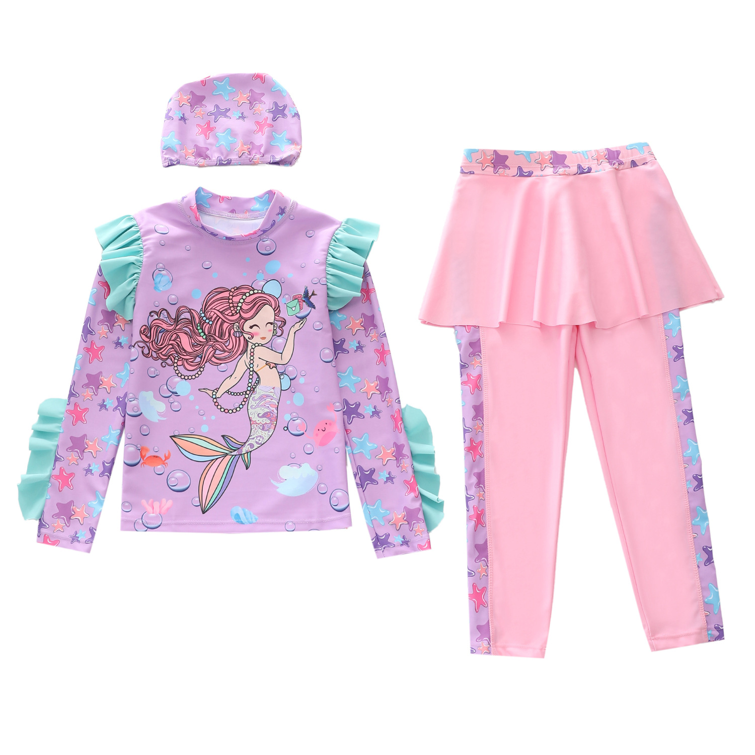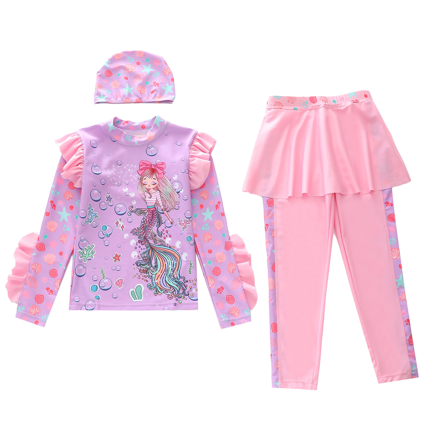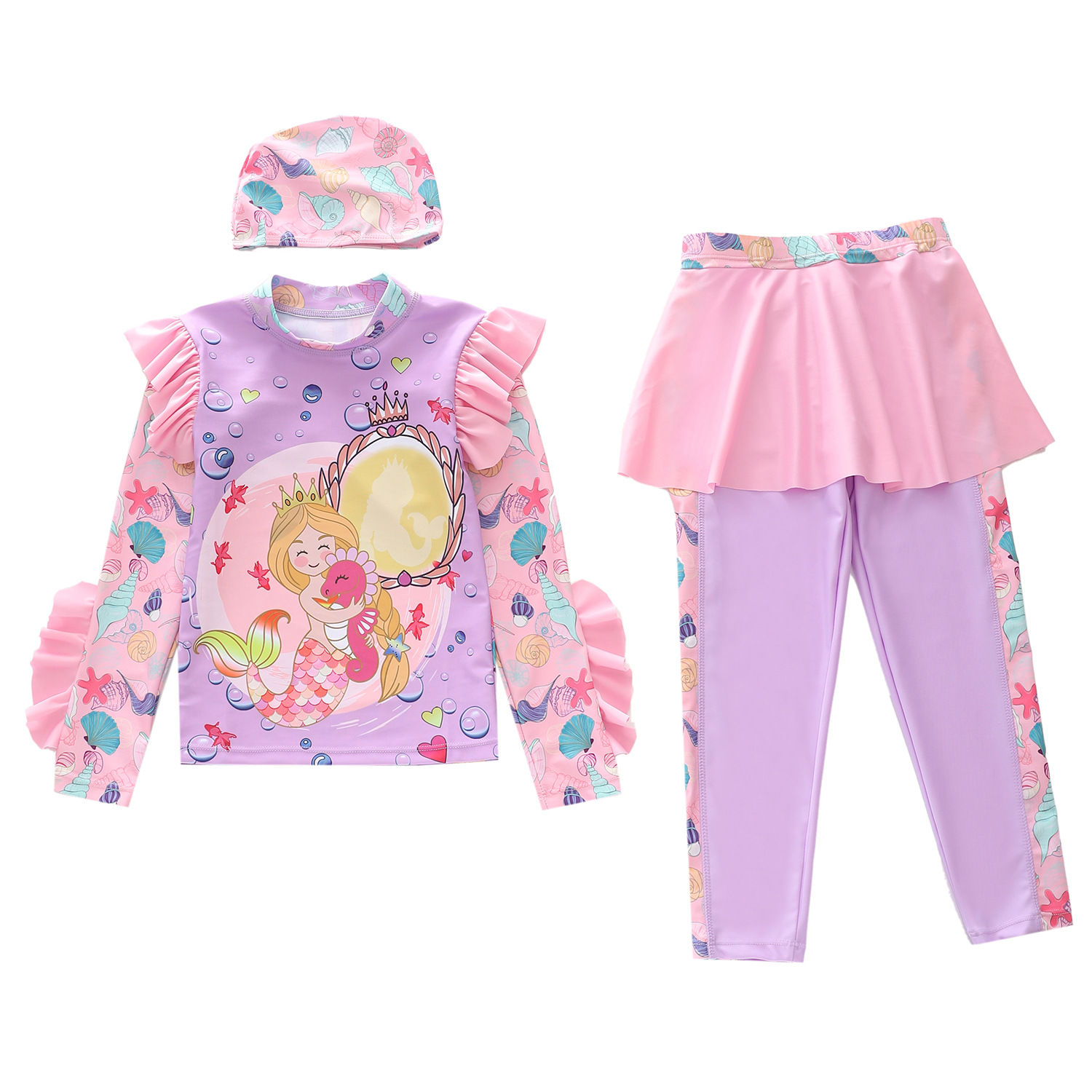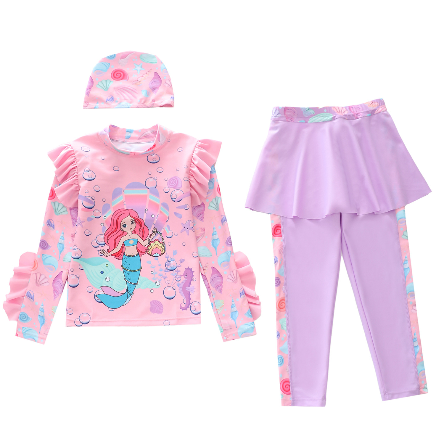 새로운 어린이 수영복 여성 스플릿 아기 소녀 수영복 크로스 보더 귀여운 긴팔 소형, 중형 및 대형 어린이 수영복스토어 가기