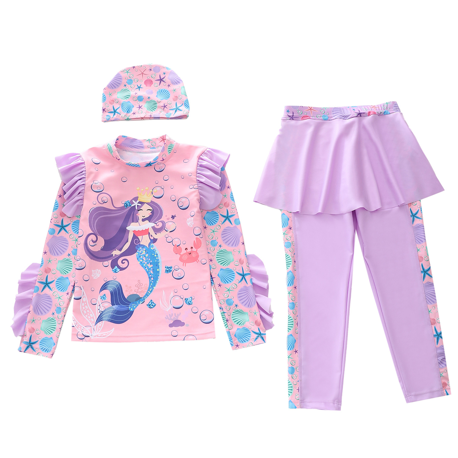 새로운 어린이 수영복 여성 스플릿 아기 소녀 수영복 크로스 보더 귀여운 긴팔 소형, 중형 및 대형 어린이 수영복
