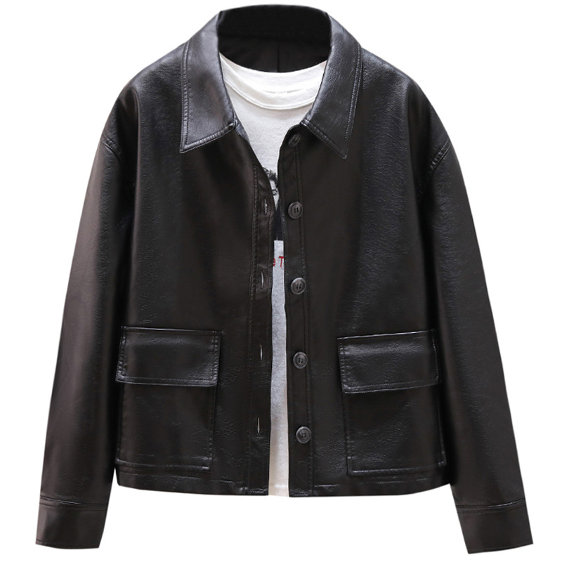 2025 신상 봄 가을 숏 PU 가죽 자켓 여성용 셔츠 칼라 루즈핏 BF 레트로 홍콩 스타일 재킷스토어 가기