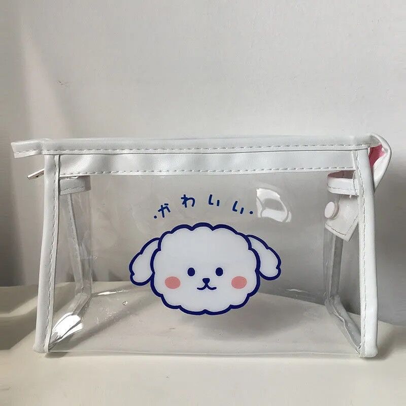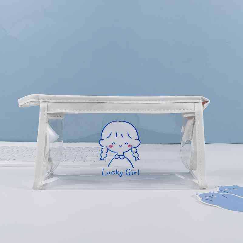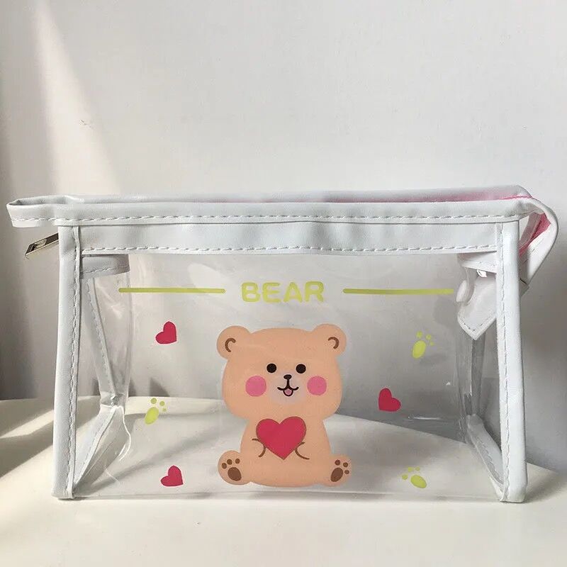 귀여운 소녀의 마음 투명 화장품 가방 연필 가방 유행 간단한 휴대용 여행 보관 가방 기내 세척 가방