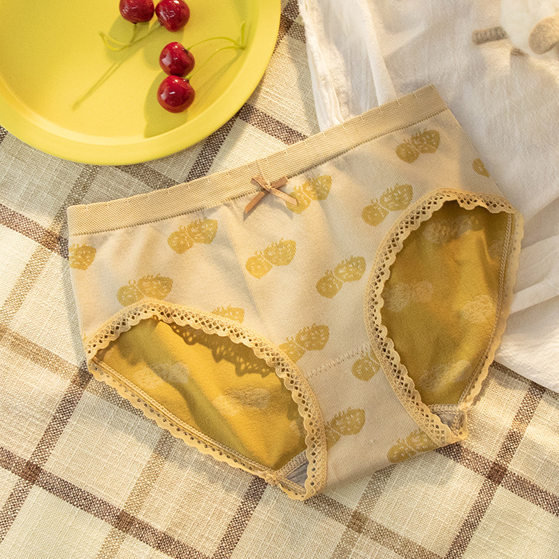 물 노출 그래핀 모양의 면 내부 추적 속옷 여성용 중간 허리 달콤한 딸기 레이스 여아 팬티스토어 가기