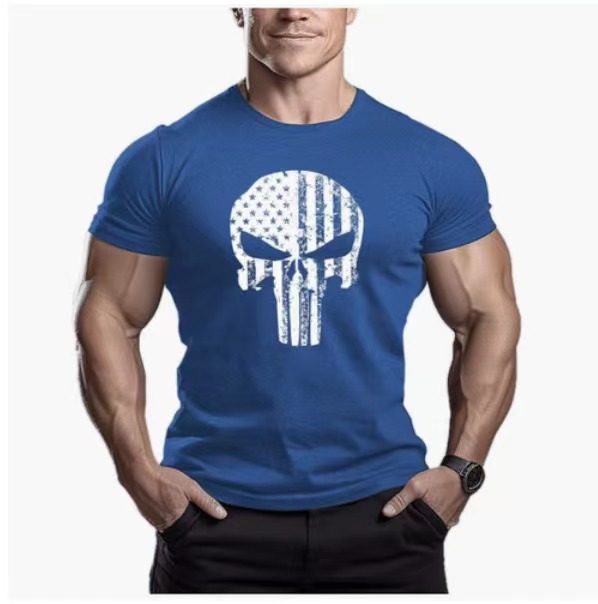 크로스 보더 아마존 소원 크로스 보더 이베이 남성용 해골 피트니스 반팔 티셔츠 코튼 체육관스토어 가기