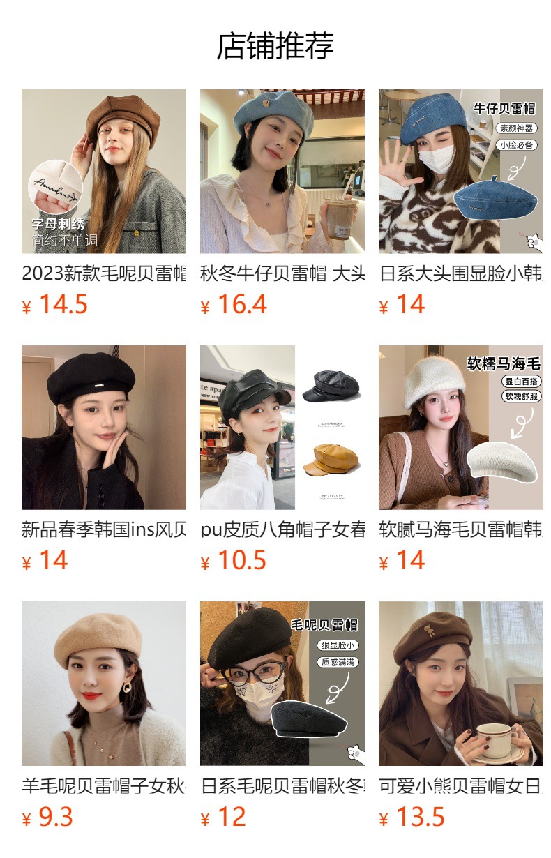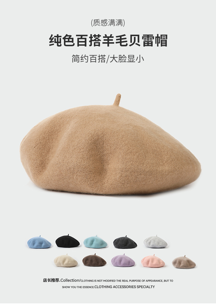 이시하라 리메이 일본식 가을과 겨울 얼굴 작은 화가 모자 두꺼운 패션 영국 복고풍 모자 여성 울 베레모스토어 가기