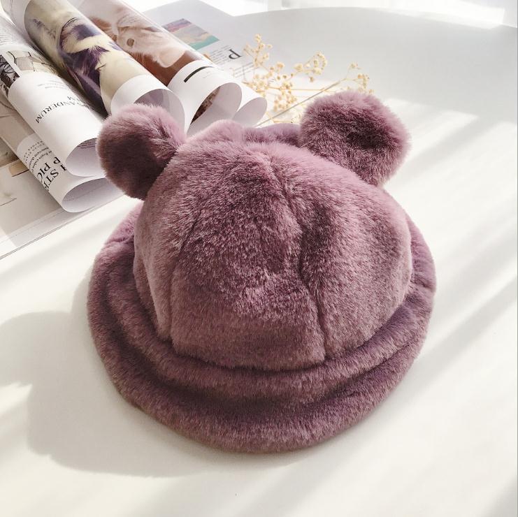 투유 가을과 겨울 토끼 모피 레오파드 무늬 단색 모자 어린이 모자 한국 어린이 양동이 모자 어부 모자 플러시 분지 모자