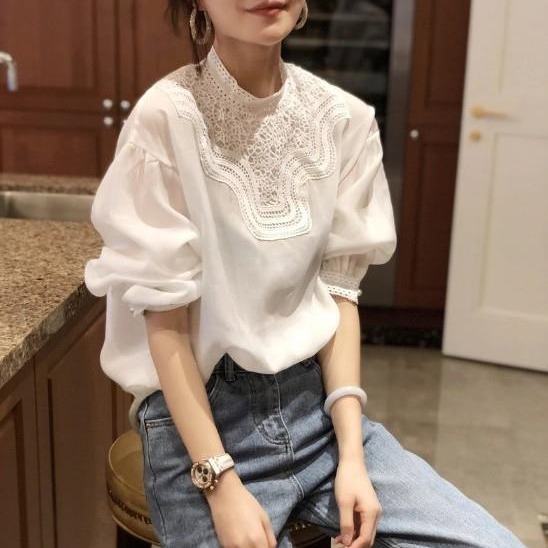 랜턴 슬리브 버블 화이트 레이스 셔츠 여성의 이른 가을 탑 쉬폰 셔츠 2020 여름 새로운 유럽 역 유럽 패션스토어 가기