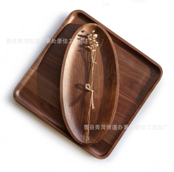 원래 가정 두꺼운 검은 호두 단단한 나무 트레이 차 트레이 손잡이 저녁 식사 접시가있는 인터넷 유명 인사 호텔 커피 플레이트스토어 가기