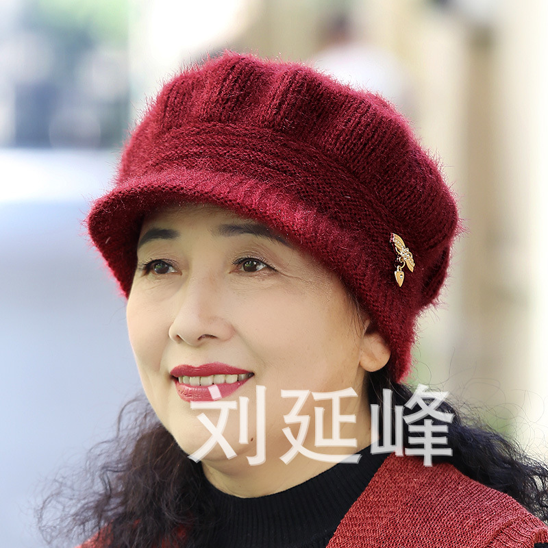 노인용 모자 여성 가을 겨울 니트 엄마 모자 중년 및 노인용 두꺼운 보온 모직 모자 성인용 둥근 모자