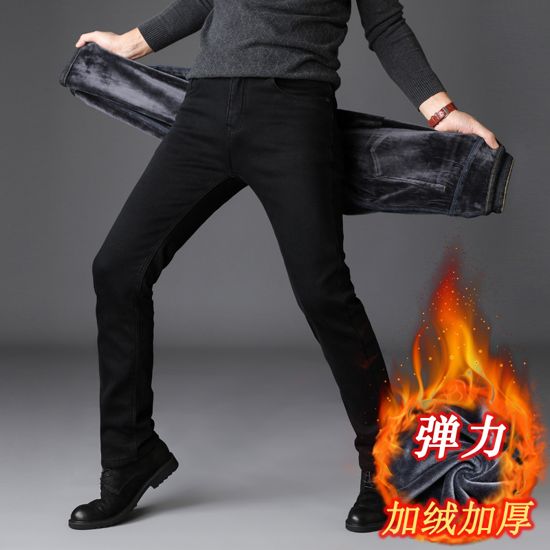 겨울 기모 청바지 남자의 뚱뚱한 남자의 바지 플러스 사이즈 큰 느슨한 높은 벨트 벨벳 따뜻한 바지스토어 가기