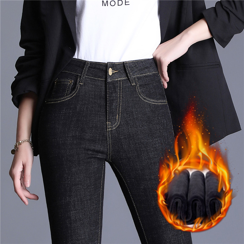 여성용 겨울 하이웨이스트 슬림핏 기모 얇은 플리스 타이트핏 아우터용 9부 블랙 슬림 팬츠 2025스토어 가기