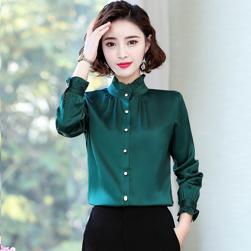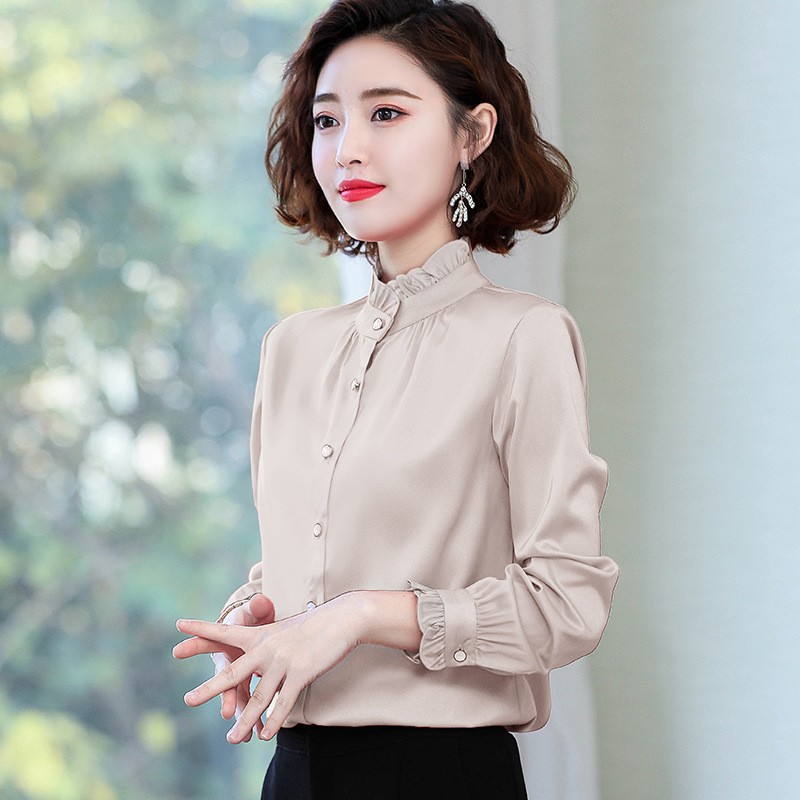쉬폰 셔츠 여성 서양식 셔츠 2024 봄 새로운 가을 패션 우아한 탑 긴 소매 자수 어머니 셔츠스토어 가기