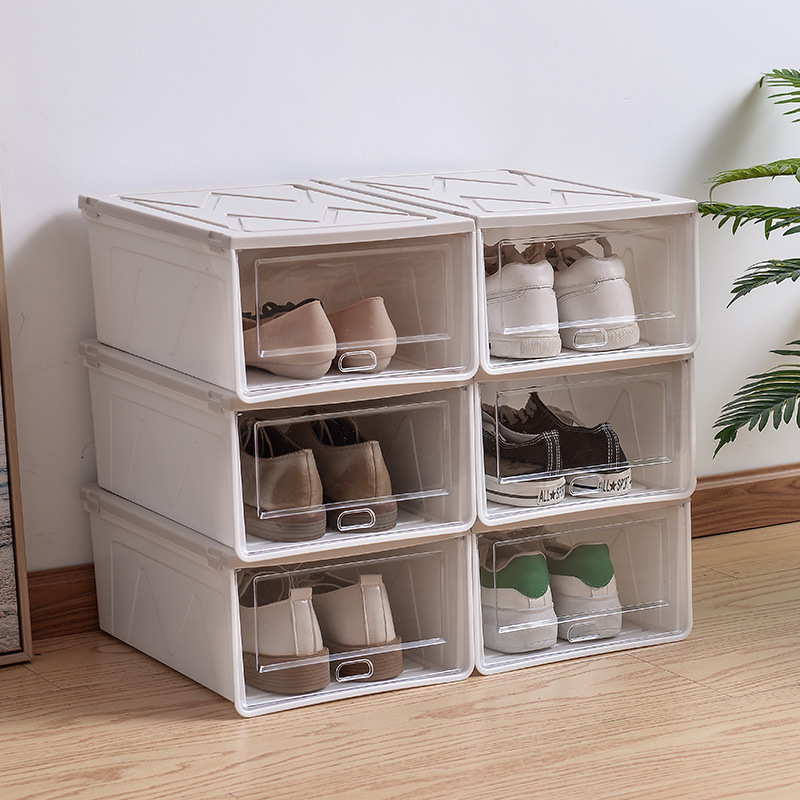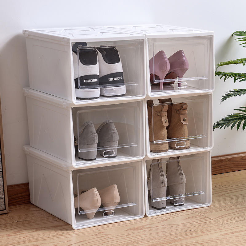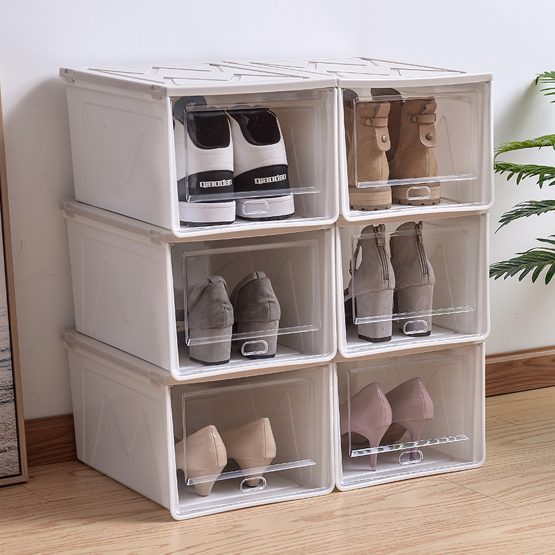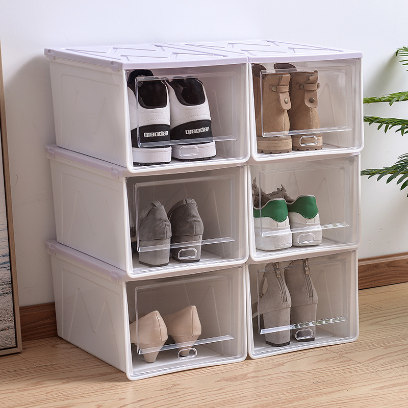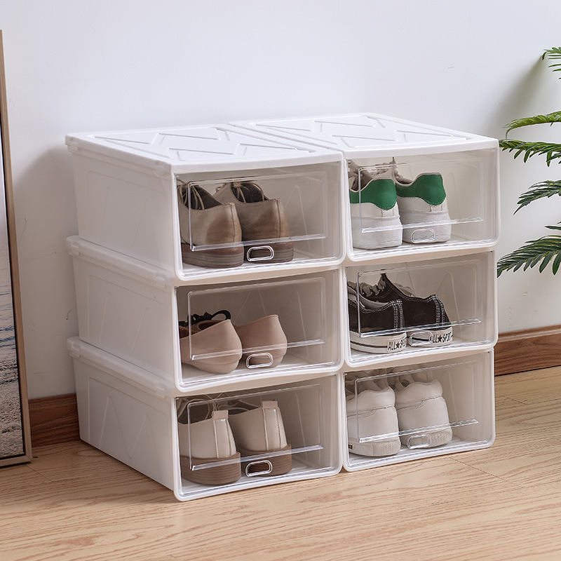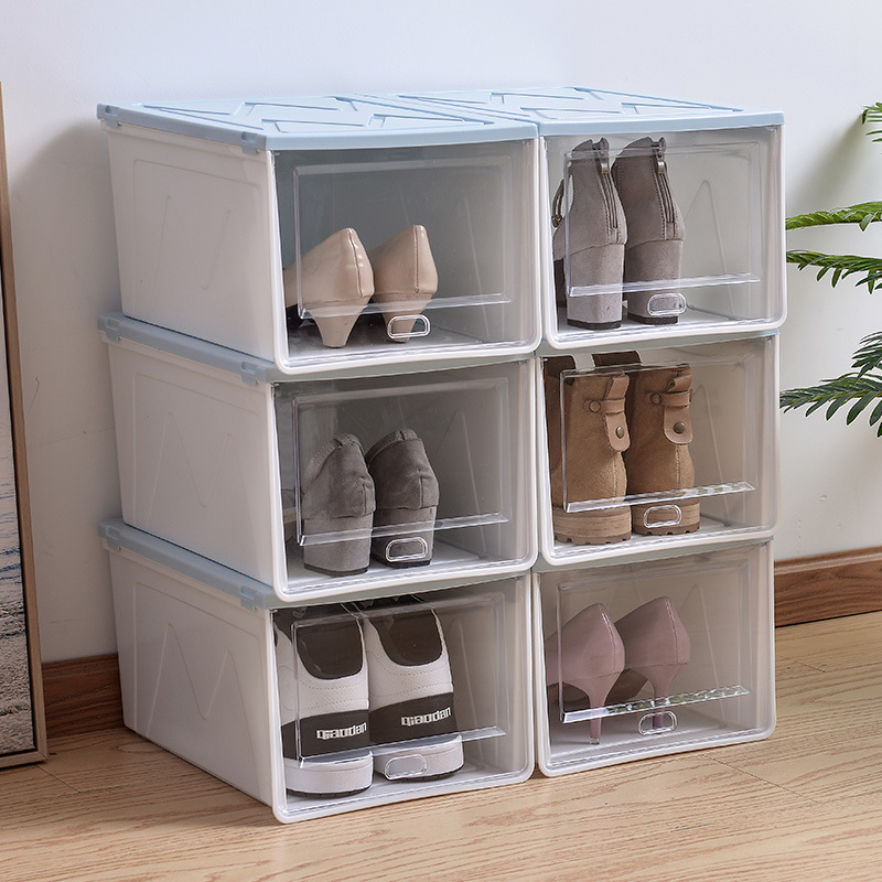두꺼운 방진 보관 마무리 플립 이동식 플라스틱 신발 상자 쌓을 수있는 신발 보관 상자 제조 업체 도매스토어 가기