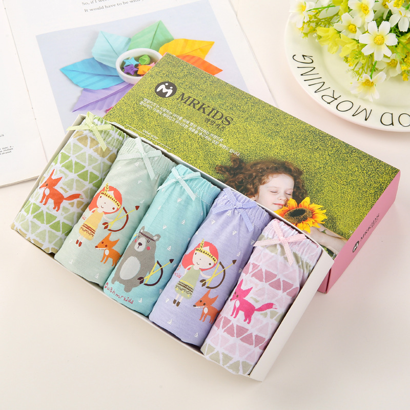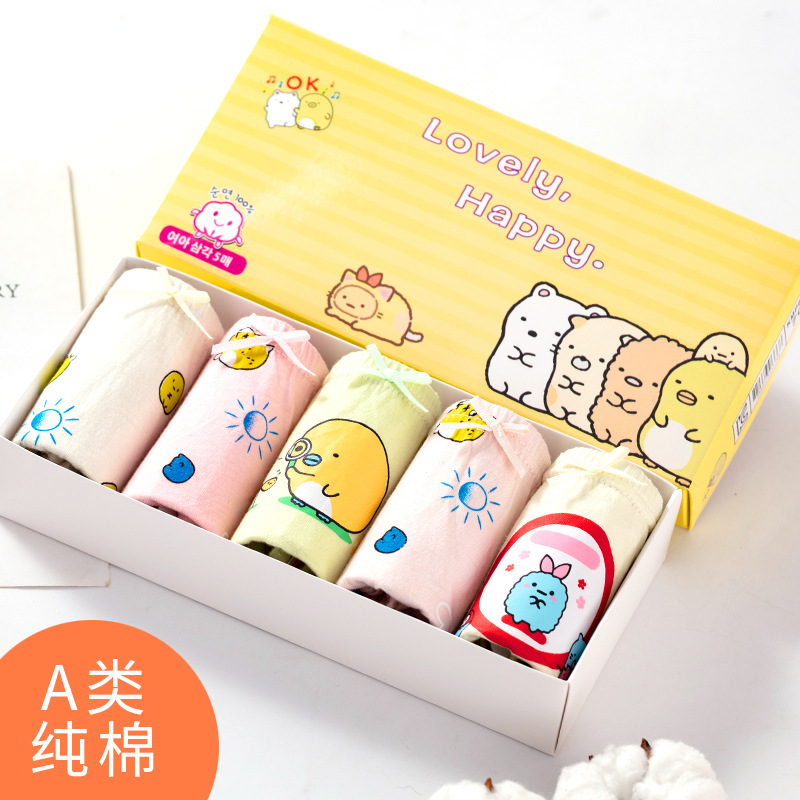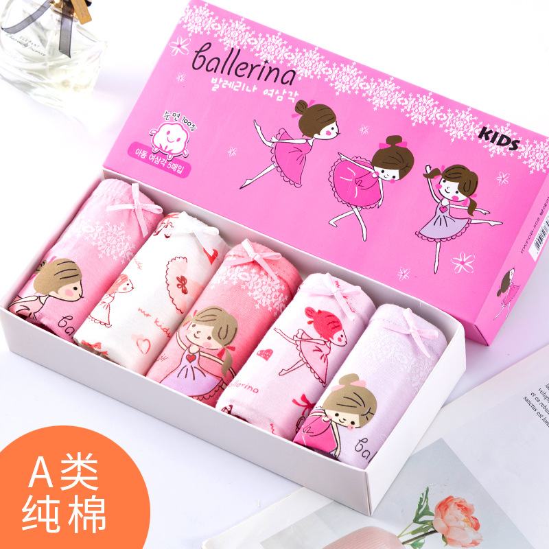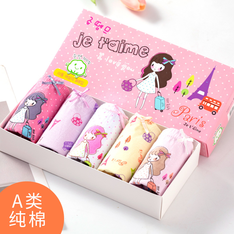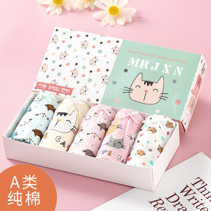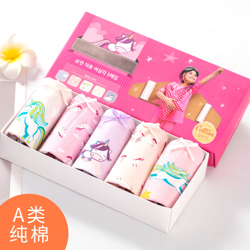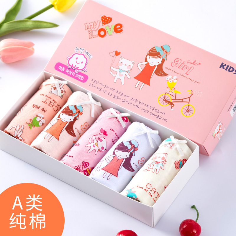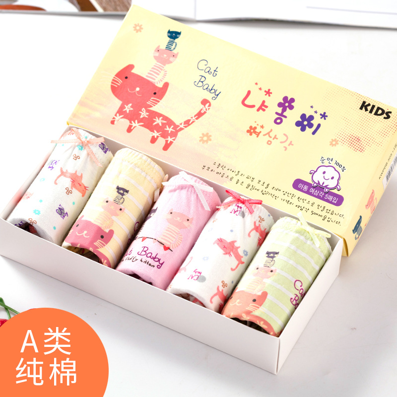 한국식 어린이 속옷 면 박스형 여아 팬티 순면 아기의 면 속옷 빵 바지 a