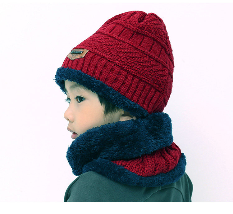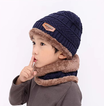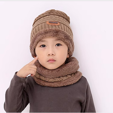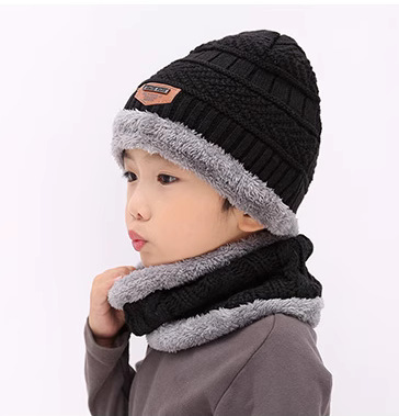 아동 모자와 스카프 투피스 세트 기모 남아 귀 보호 울 모자 가을과 겨울 유행 소년 중학교 어린이 겨울