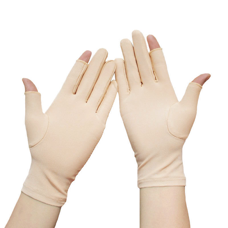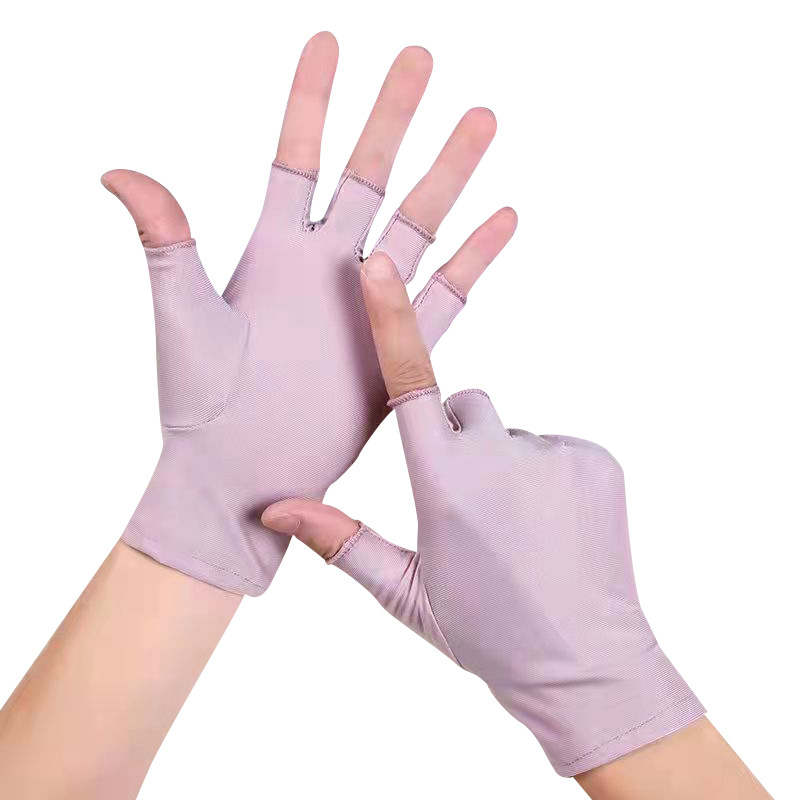 봄과 가을 얇은 남녀 스판덱스 선 스크린 장갑 탄성 반 손가락 이슬 두 손가락 터치 스크린 운전 야외 작업