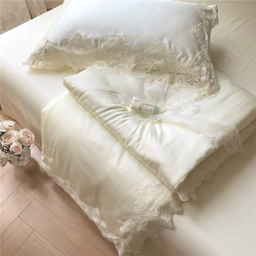 공주풍 레이스 테슬 여름 시원한 이불 4종 세트 여름용 아이스 실크 동백꽃 자수 에어컨 이불스토어 가기