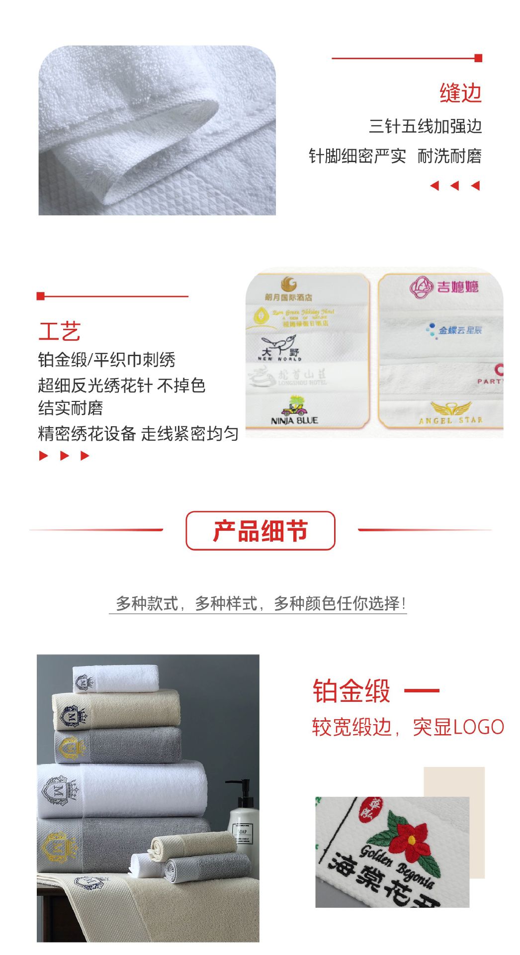 5 성급 호텔 린넨 코튼 타월 자수 로고 화이트 B & B 뷰티 살롱 면 목욕 타월 감금 센터스토어 가기