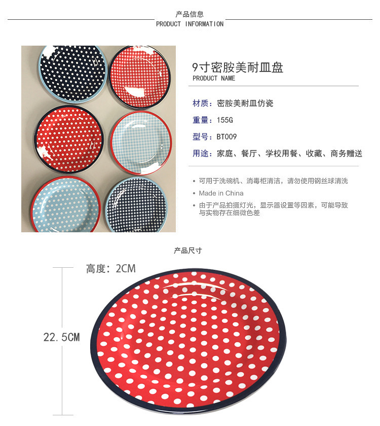 공장 도매 9 인치 접시 멜라민 접시 접시 접시 접시 세트 청소 편리스토어 가기