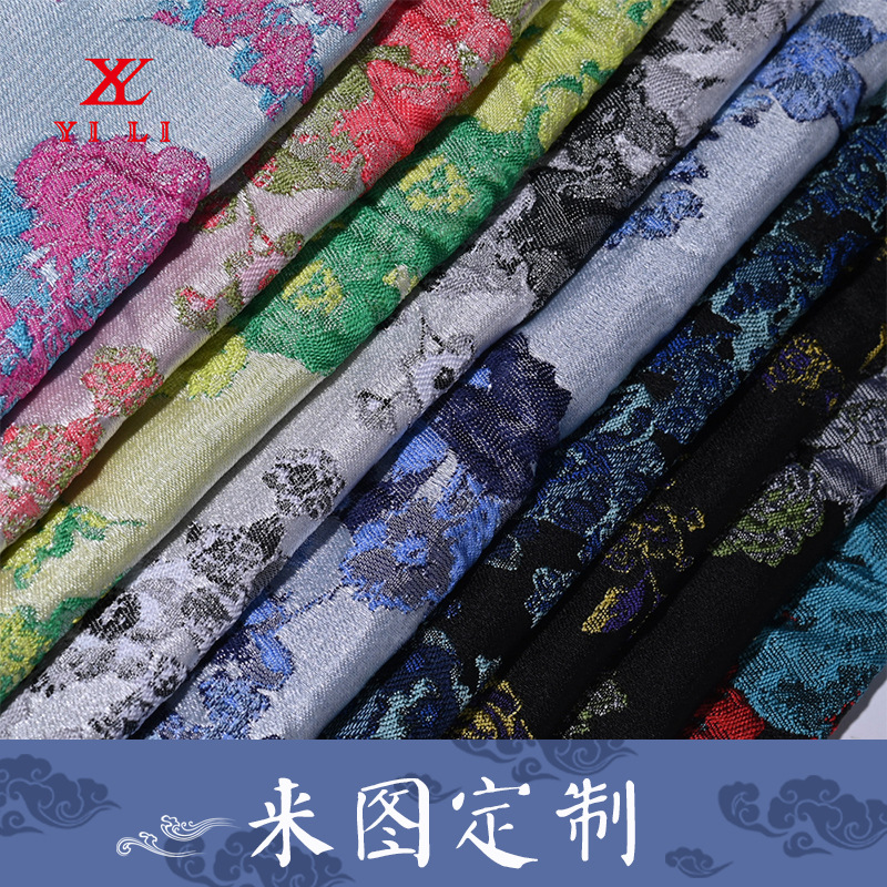 공장 공급 여성용 치파오 스커트 자카드 폴리에스터 면 원단 중국 스타일 유명한 민족 스타일 브로케이드 새틴 사용자 정의