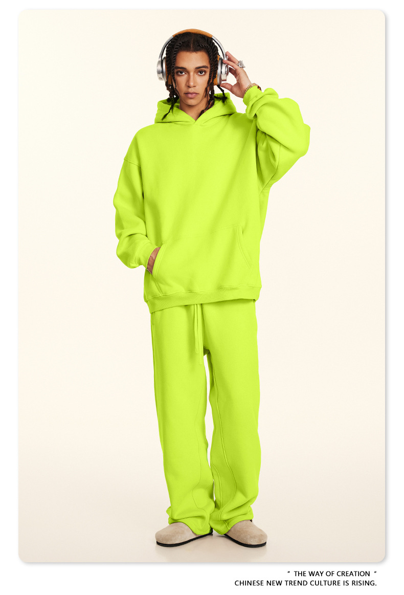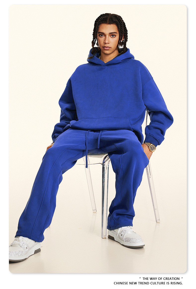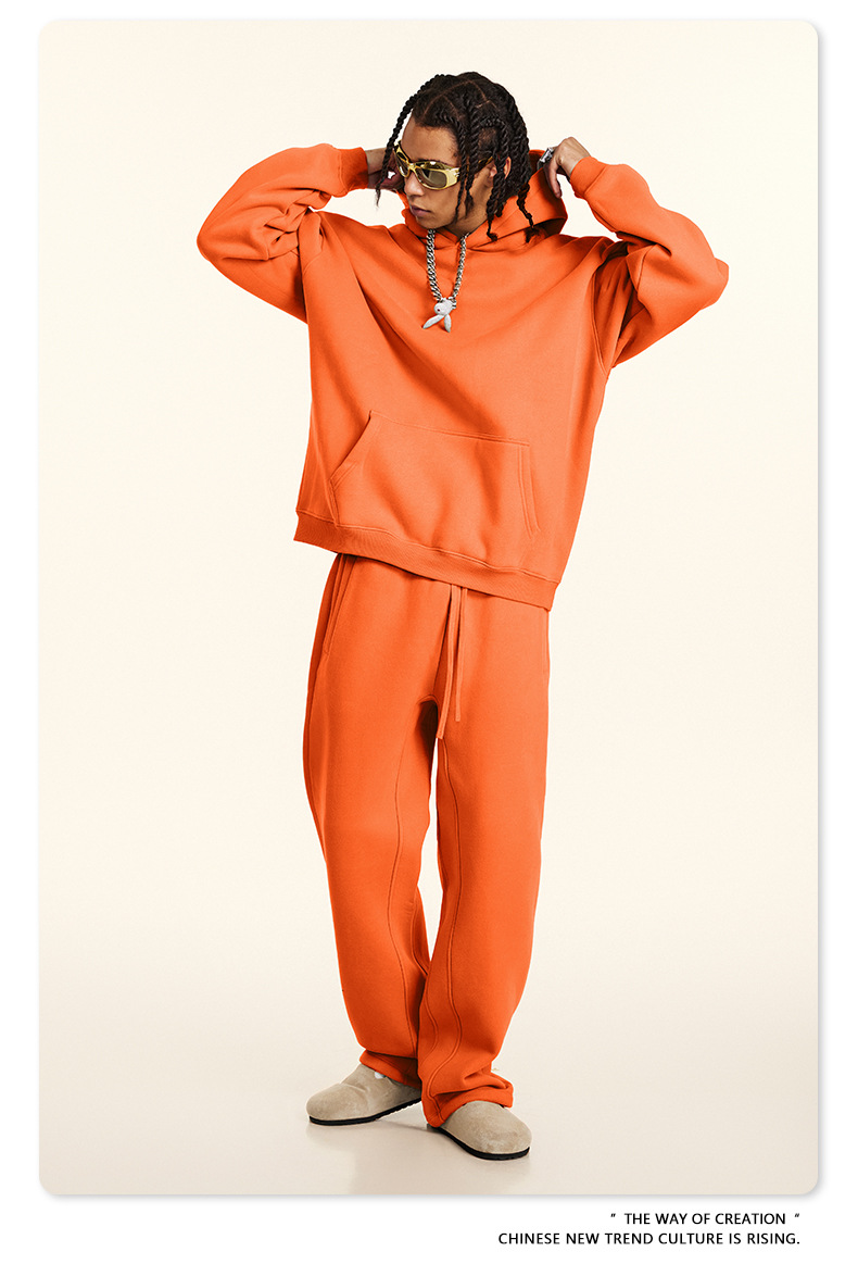 BE 남성복 2025 가을 미국 스타일 트렌디 캐주얼 청소년 후드 플리스 스웨트셔츠 및 스웨트팬츠 스포츠 세트 남성 트렌디