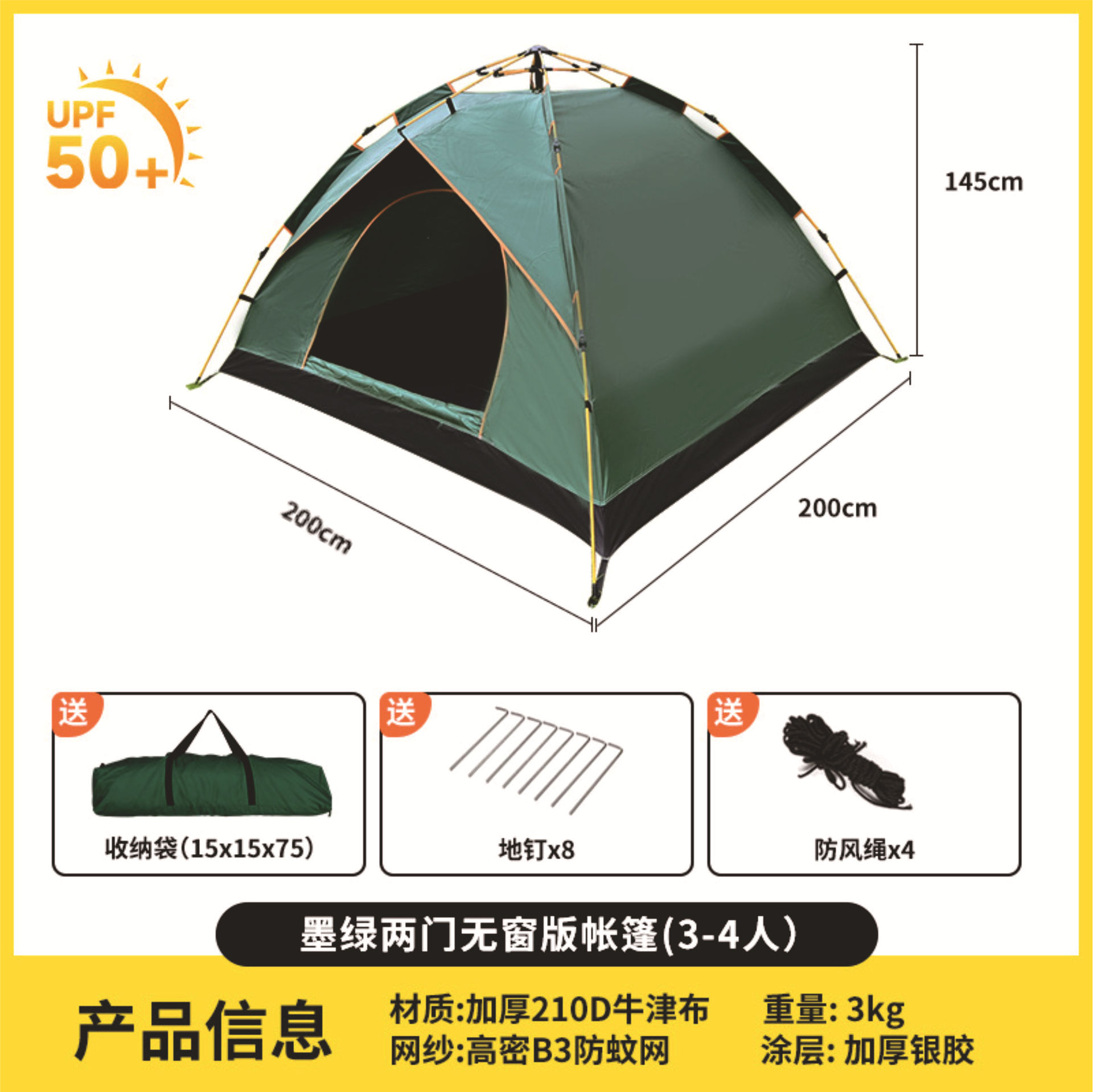 텐트 야외 완전 자동 휴대용 캠핑 해변 캠핑 가짜 더블 레이어 접이식 빠른 개방형 빌딩 방지 방수 텐트