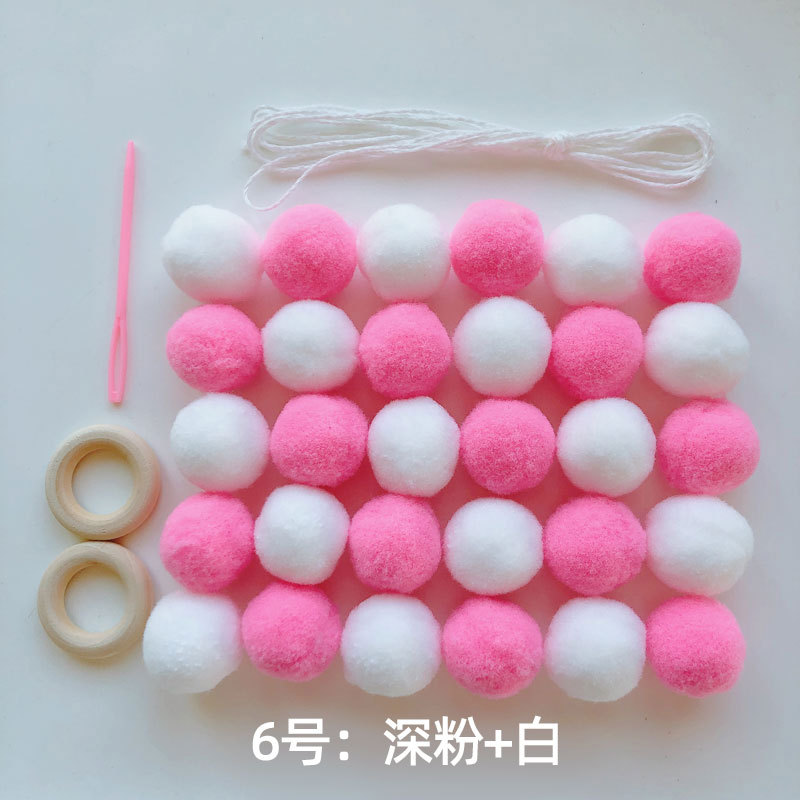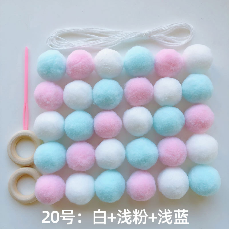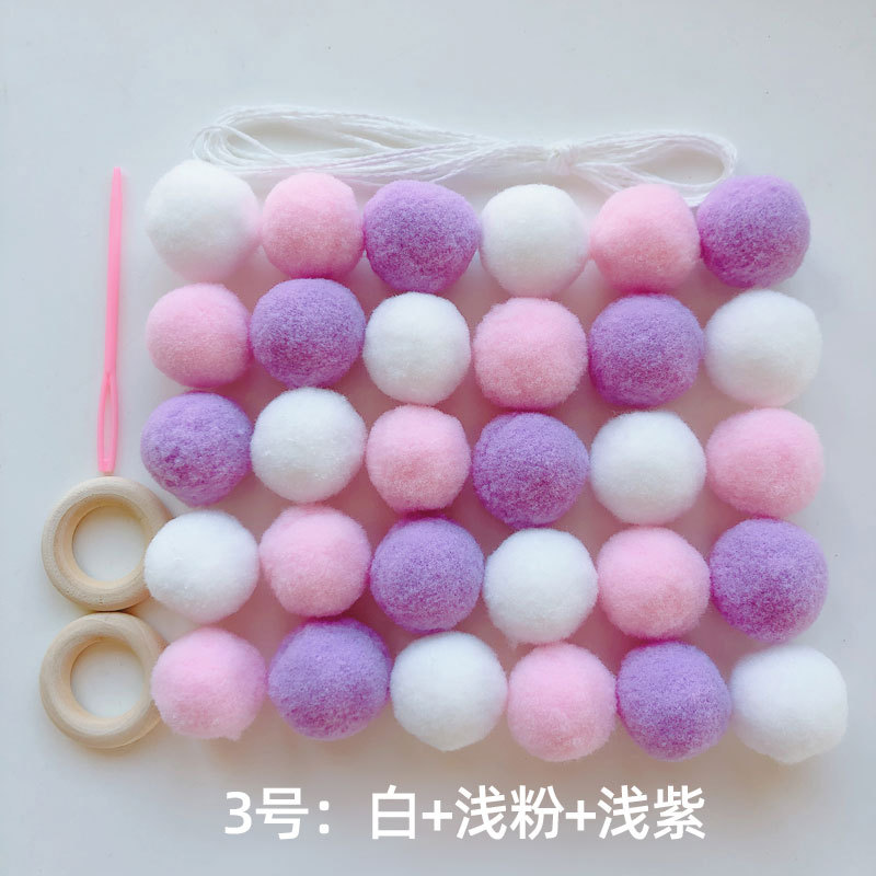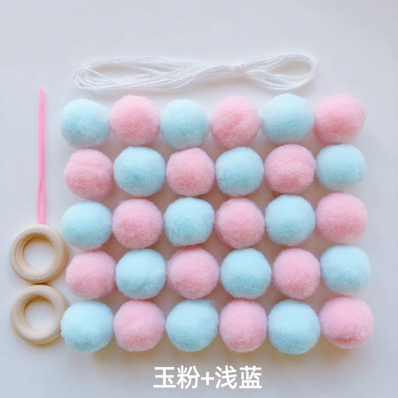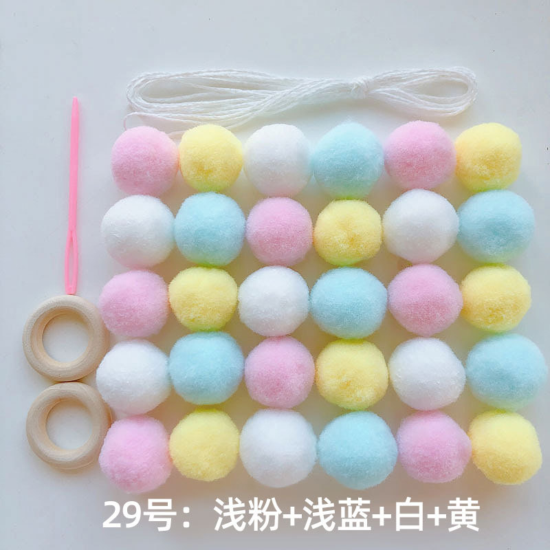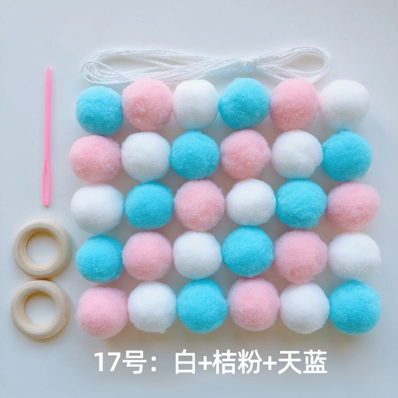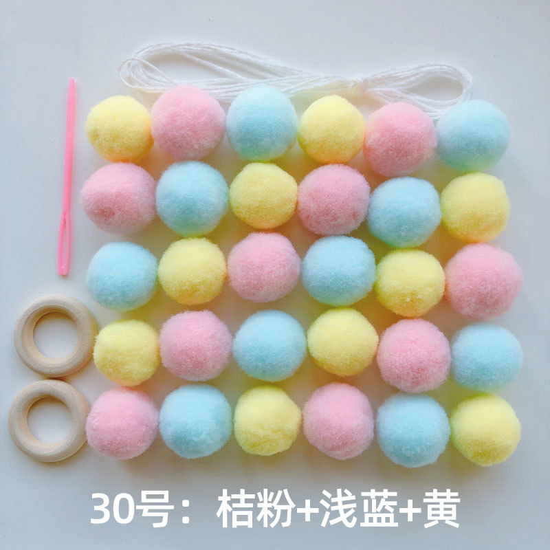 包装:30颗直径约2.5cm的毛球+1根长约2.5的线+一根塑料针+2个木环圈