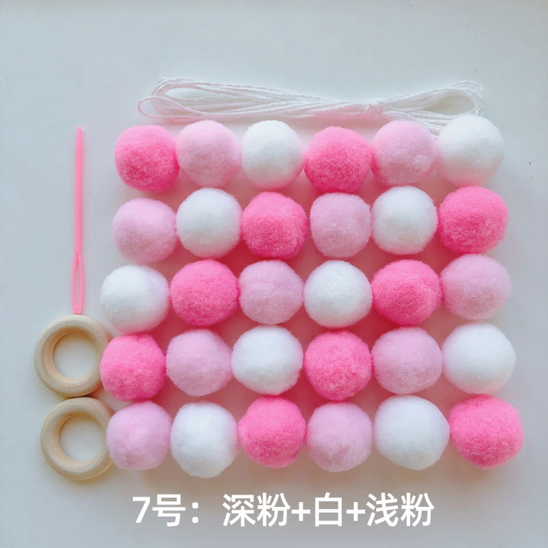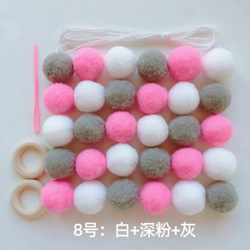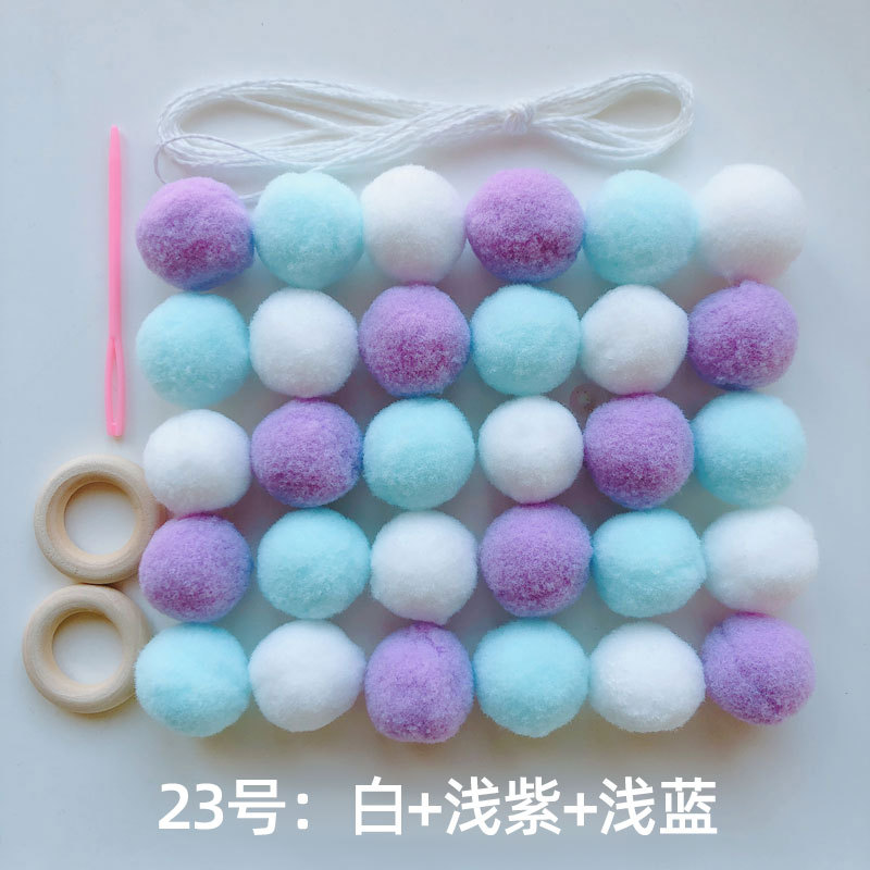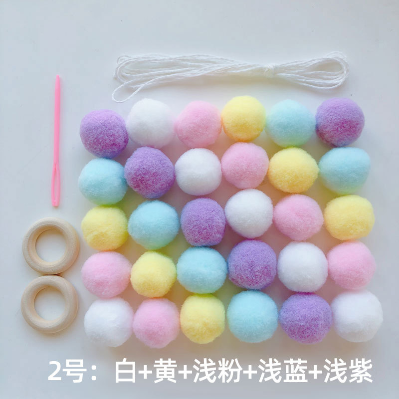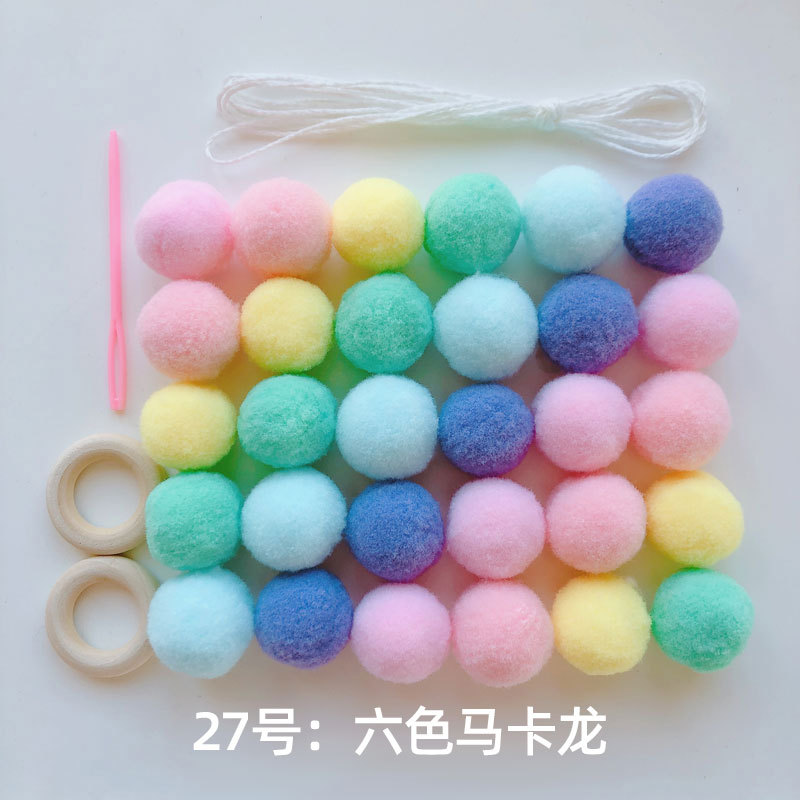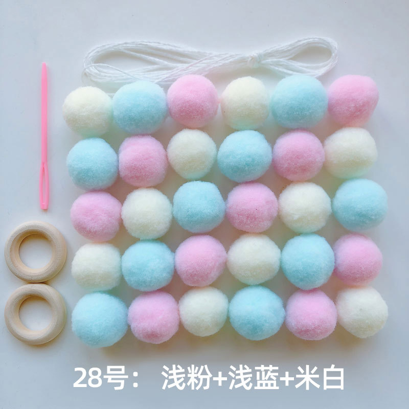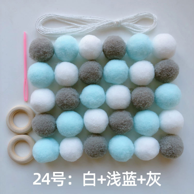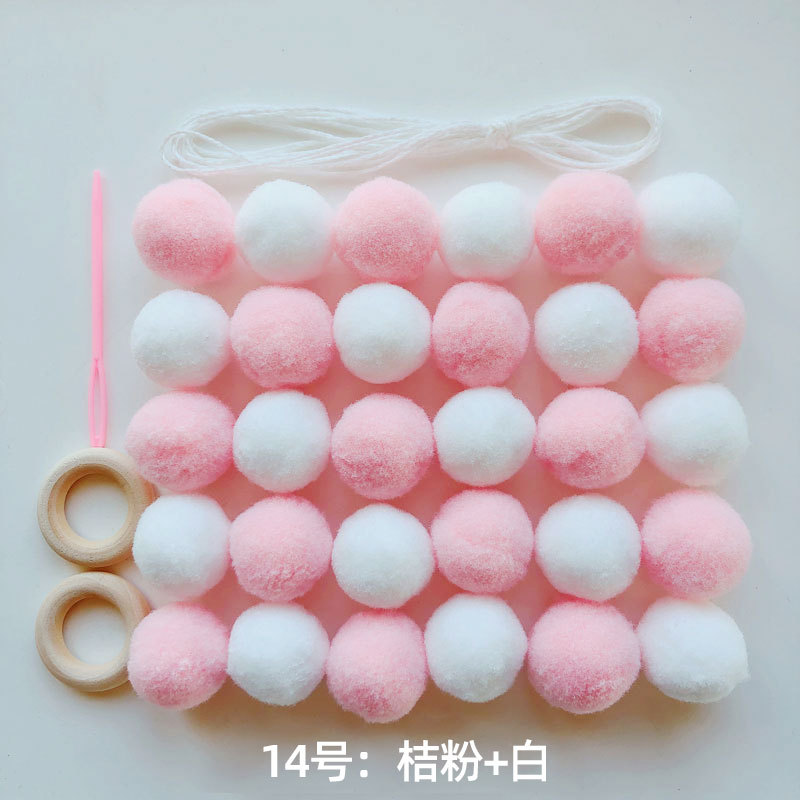 包装:30颗直径约2.5cm的毛球+1根长约2.5的线+一根塑料针+2个木环圈