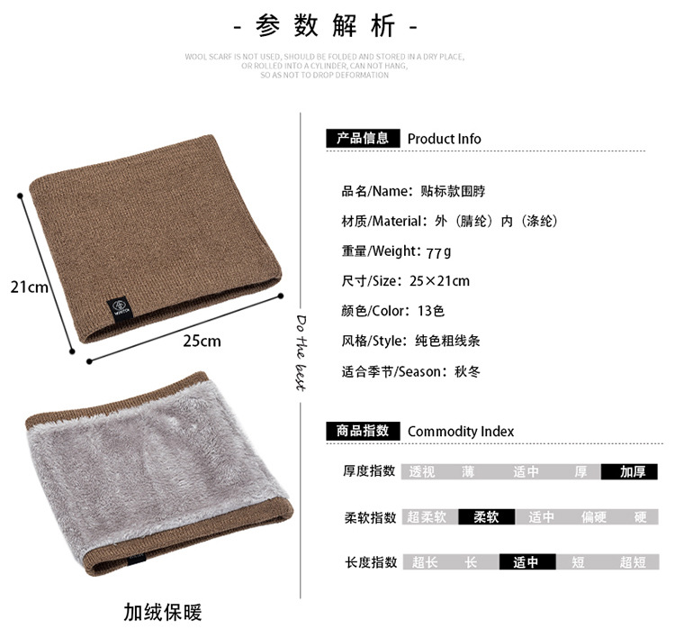 겨울 야외 니트 기모 따뜻한 칼라 단색 패션 남성과 여성의 양모 목 보호 풀오버 스카프 크로스 보더 재고스토어 가기