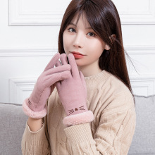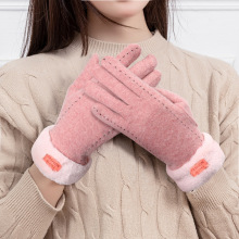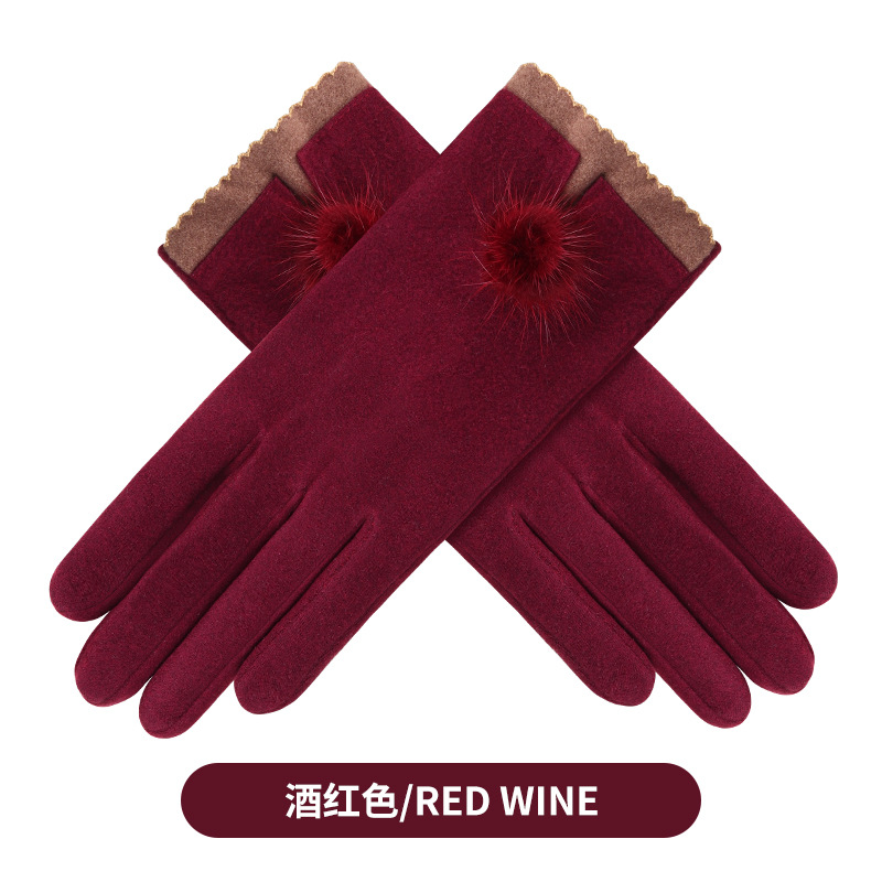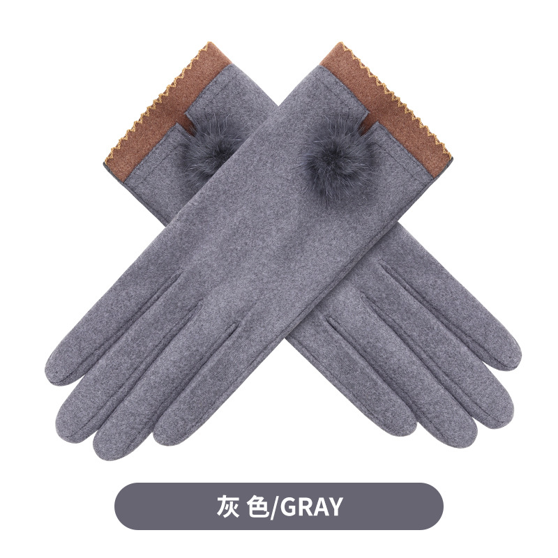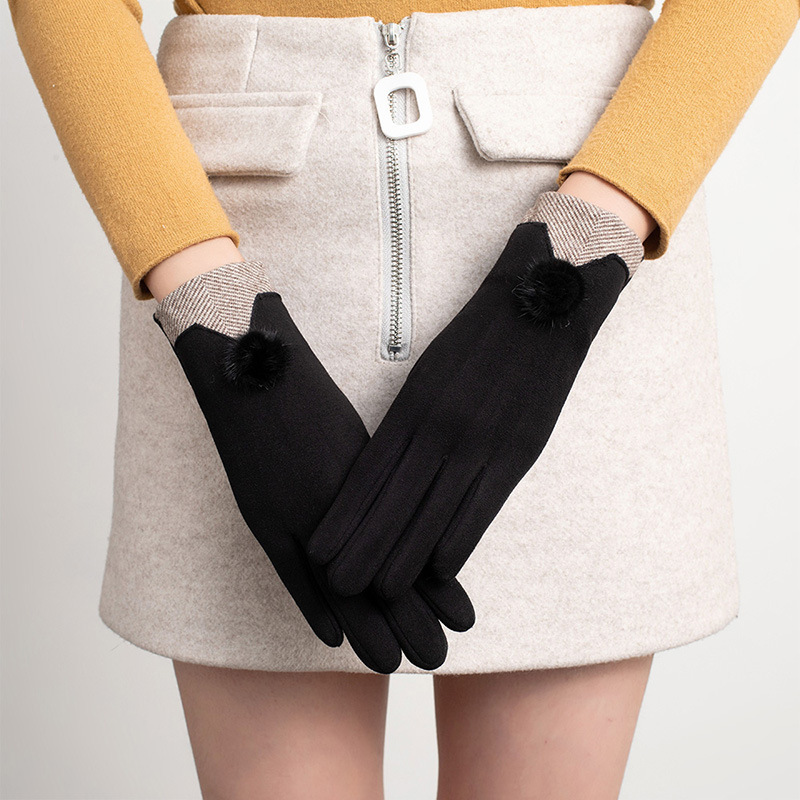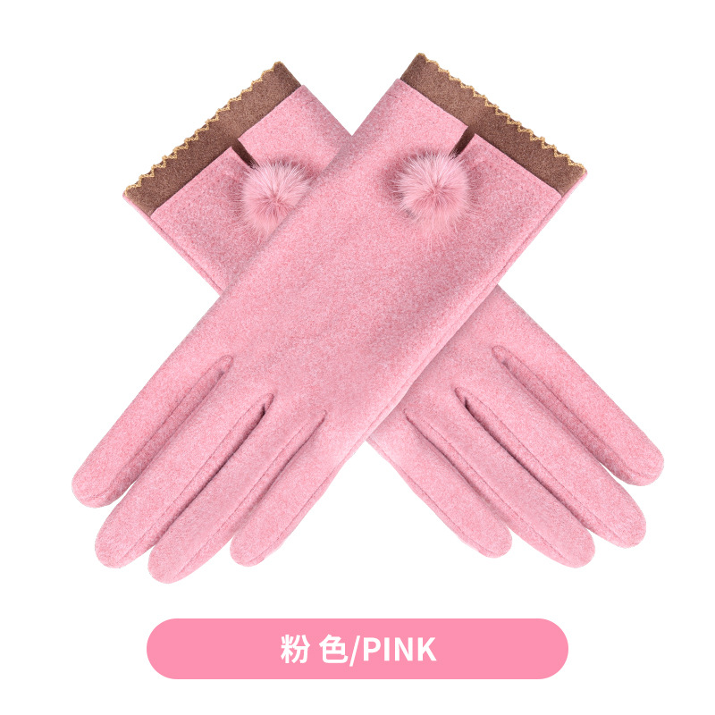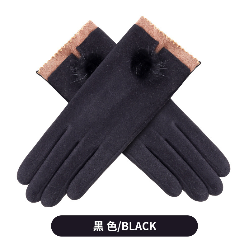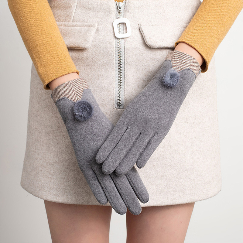 가을과 겨울 터치 스크린 벨벳 토끼 모피 볼 장갑 여성용 사이클링 따뜻한 야외 운전 장갑 여성용 기모 승마 장갑