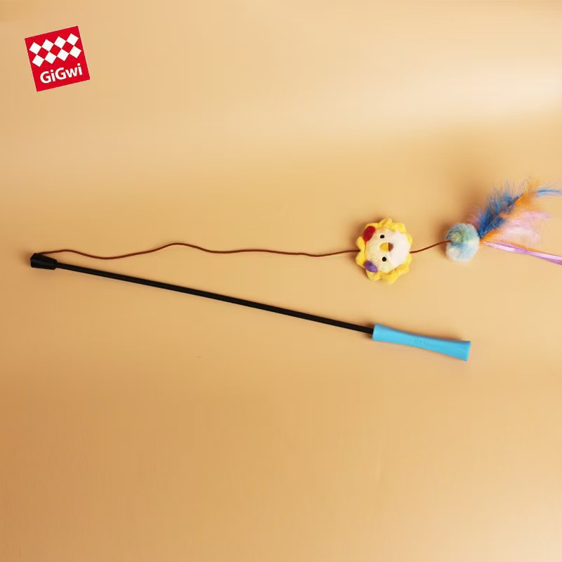 Gigwi Gui는 마술 고양이 스틱 대화 형 장난감 물기 방지 놀이 고양이 긴 막대 깃털 울 볼 용품