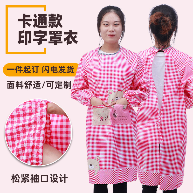 만화 성인 바지 남성과 여성의 가사 주방 오염 방지 기름 물 긴 소매 앞치마 인쇄 가능 로고스토어 가기