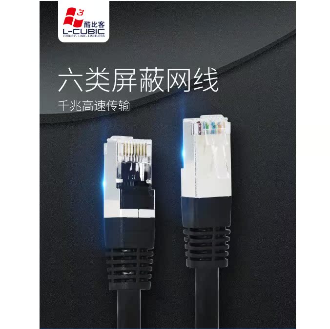 L-CUBIC cat6 无氧铜纯铜屏蔽版八芯双交成品家用商用高速六类网络跳线千兆网线跳线 屏蔽版黑色