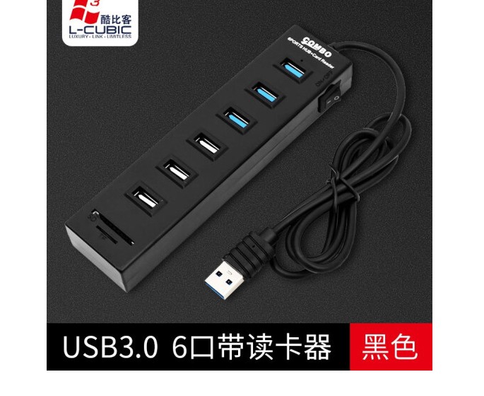 L-CUBIC USB分线器苹果笔记本台式电脑usb扩展坞多接口集线器 数据线分线器 3.0 6口 带读卡器