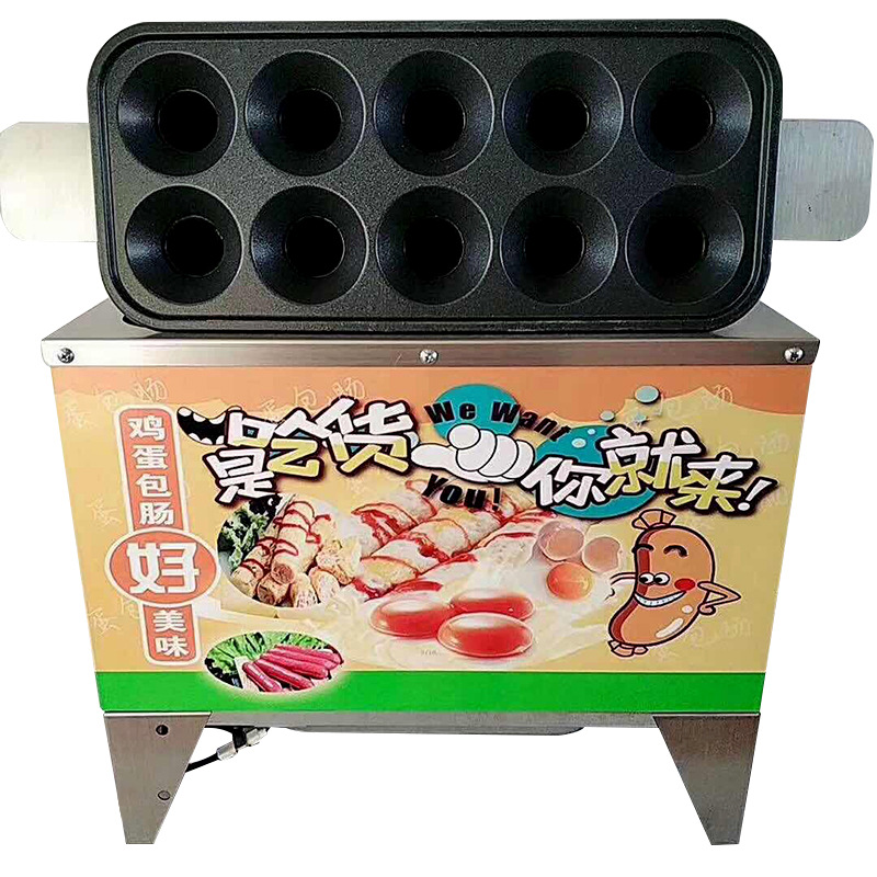 상업용 가스 플러그인 계란 소시지 기계 10 홀 자동 계란 햄 계란 소시지 스톨 스낵 장비 제조업체스토어 가기