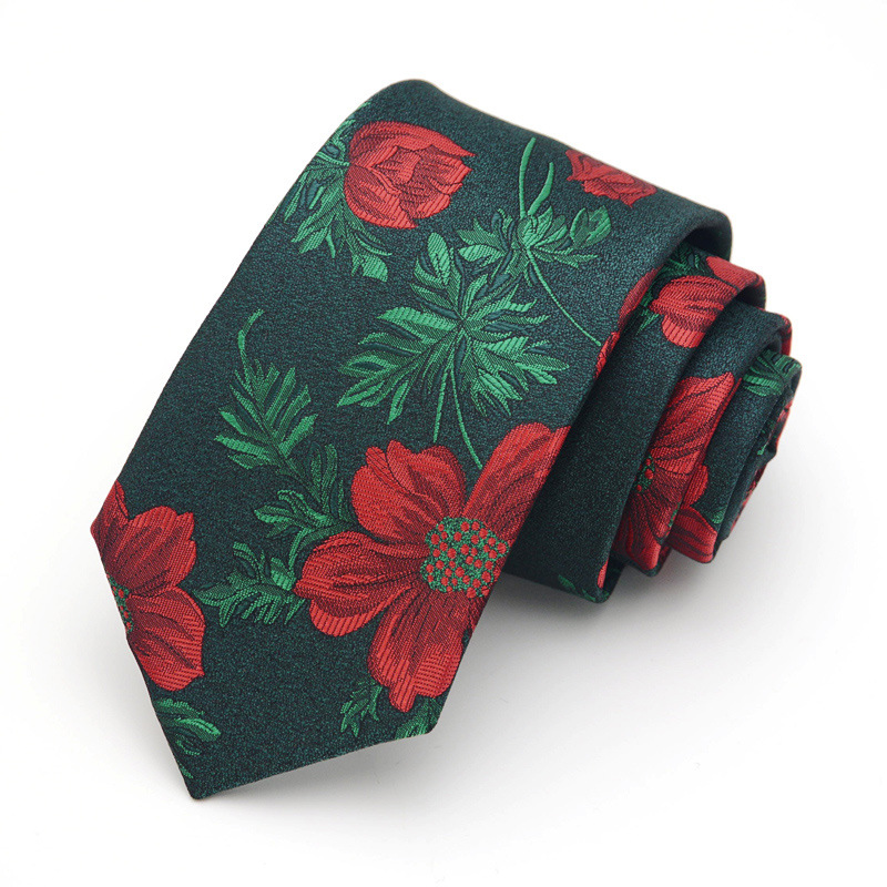 공장 도매 고밀도 원사 염색 자카드 넥타이 남성 캐주얼 패션 정장 비즈니스 레트로 대형 꽃 와이드 버전 7cm