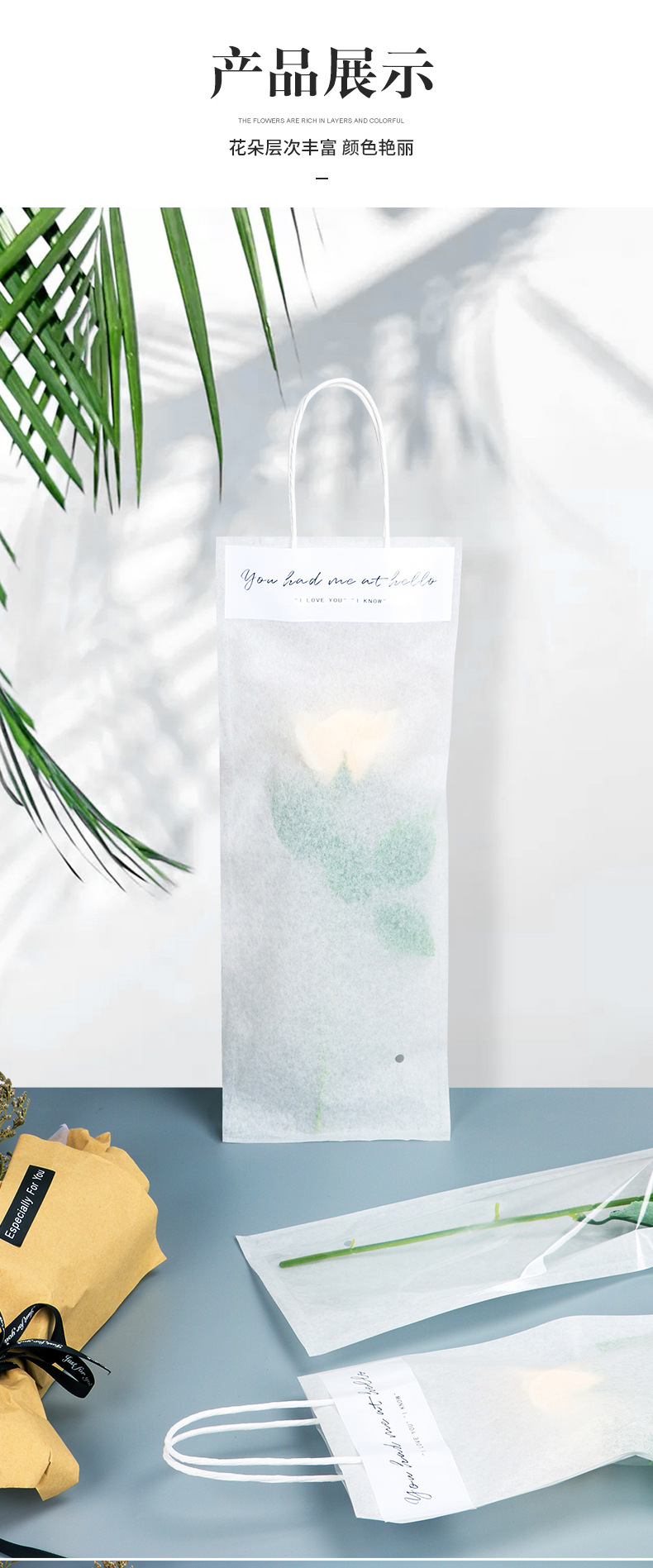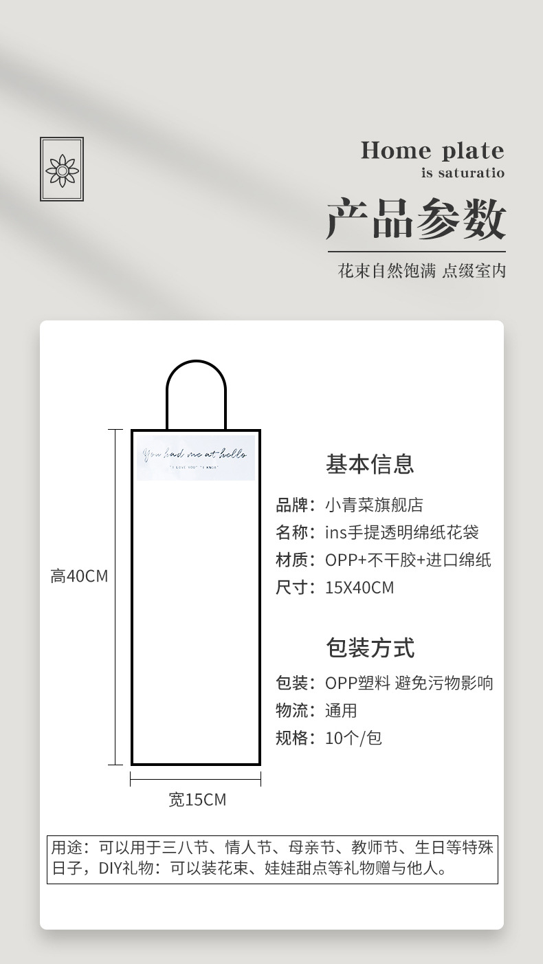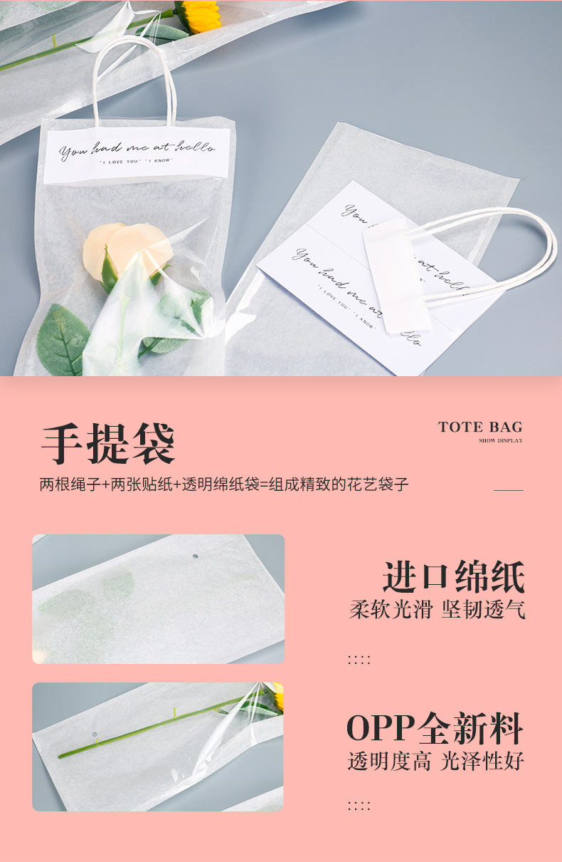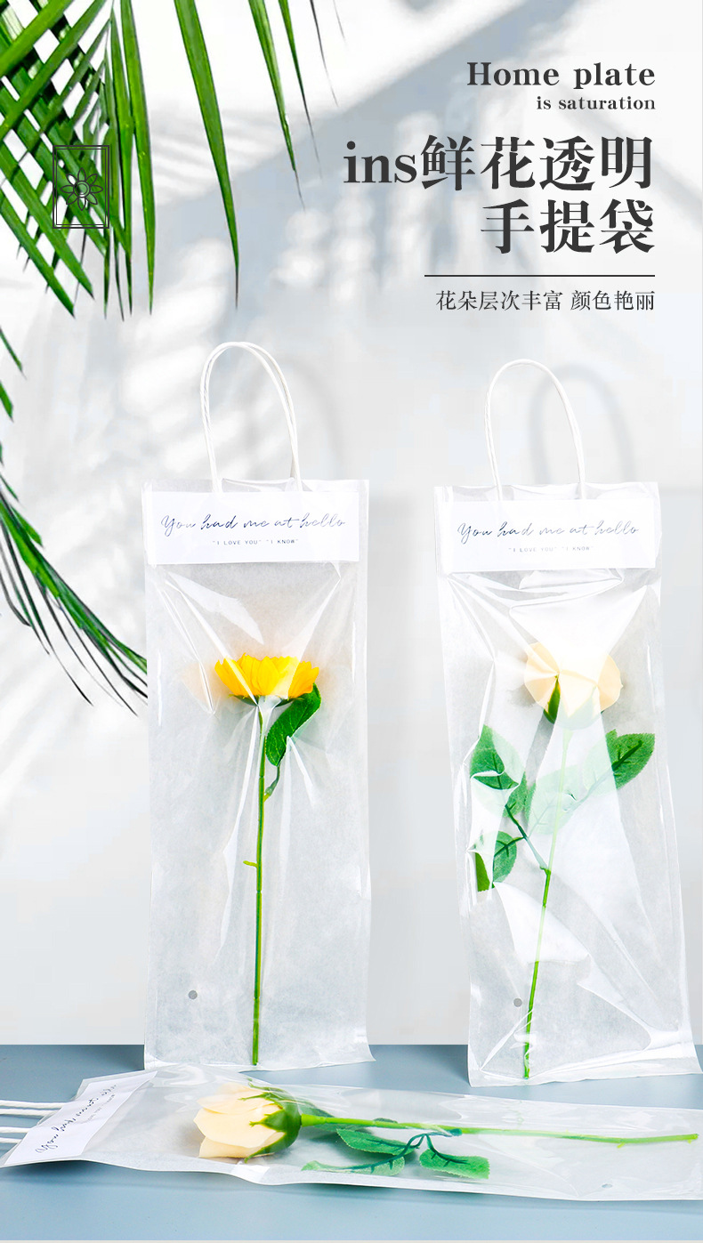 투명 꽃 핸드백 휴일 핸드백 단일 꽃 포장 가방 작은 꽃다발 포장 가방 사용자 정의스토어 가기