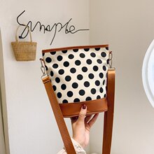 文艺森系帆布包包女包2020新款百搭手腕包水桶手提包外出波点包袋