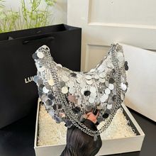 韩版亮片包包女2024新款洋气链条单肩斜挎包休闲时尚新月包饺子包